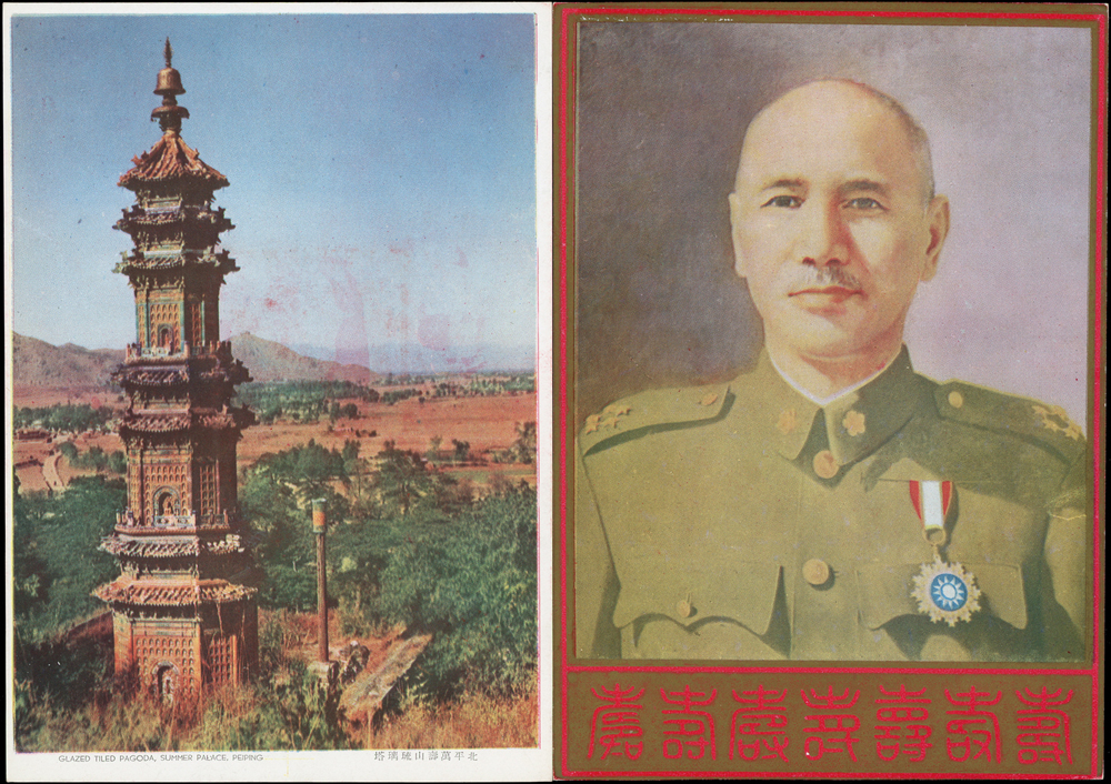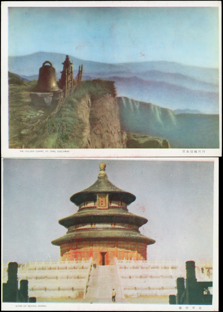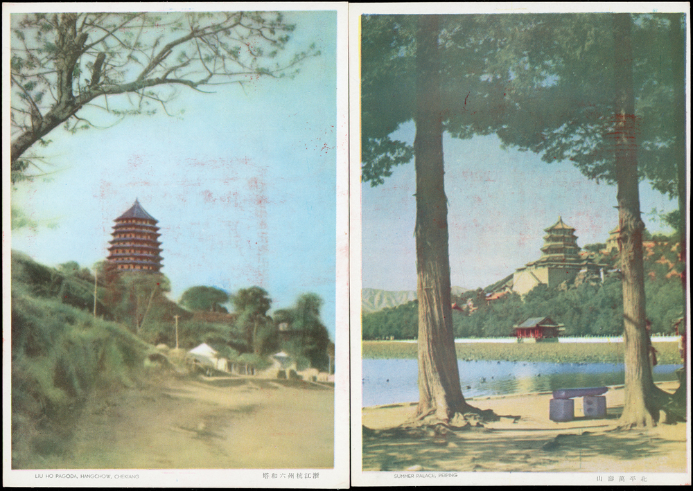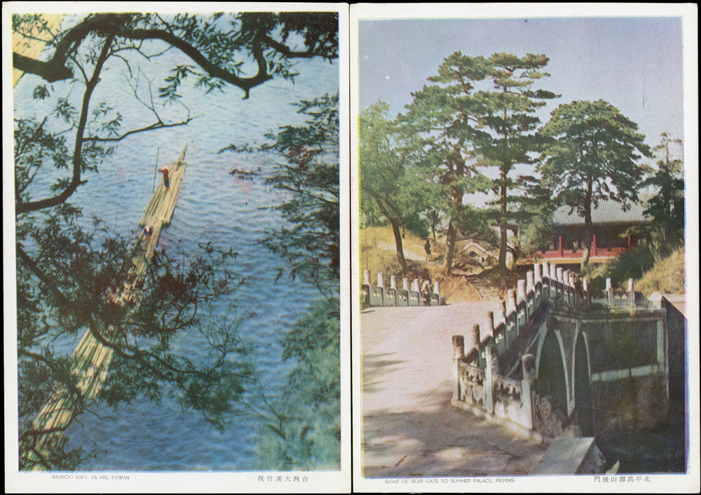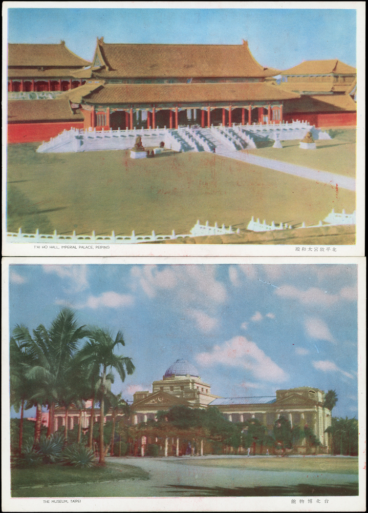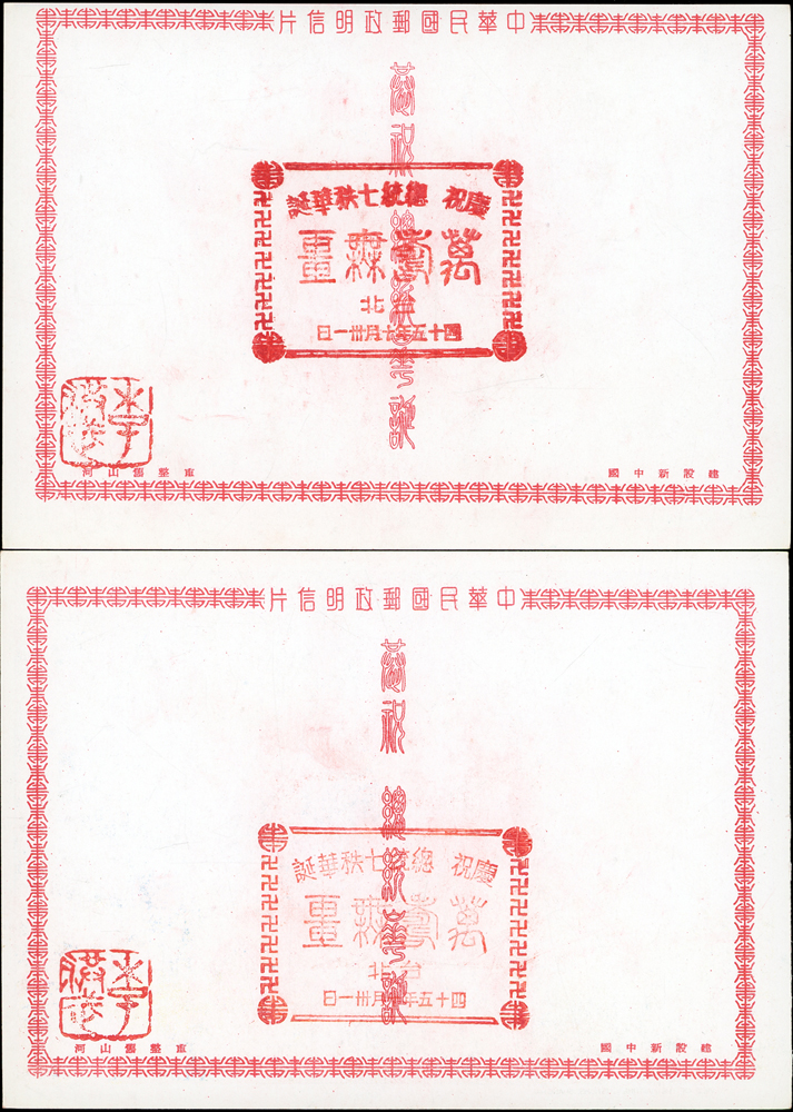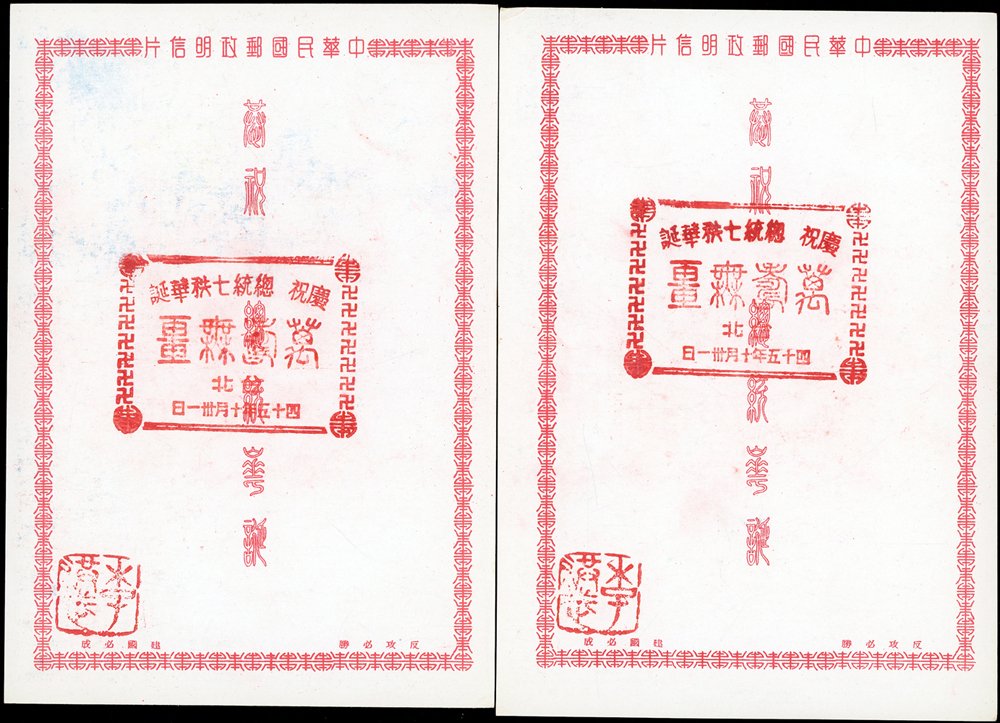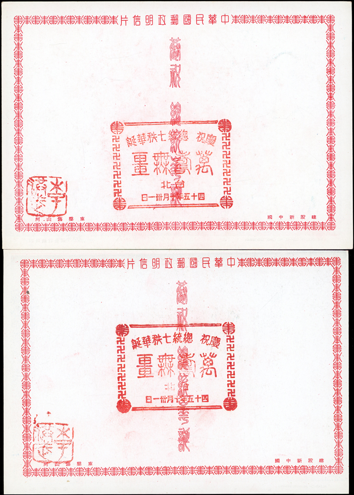韓目#61~84.民國45年10月《岡陵獻頌 薄海騰歡》祝壽風景明信片24片,缺北投鄉村景色成全套,格式面均銷其紀戳及收藏章,其中台北博物館格式面貼地圖2角銷日戳,附封套(色淡微污)(Page 124)