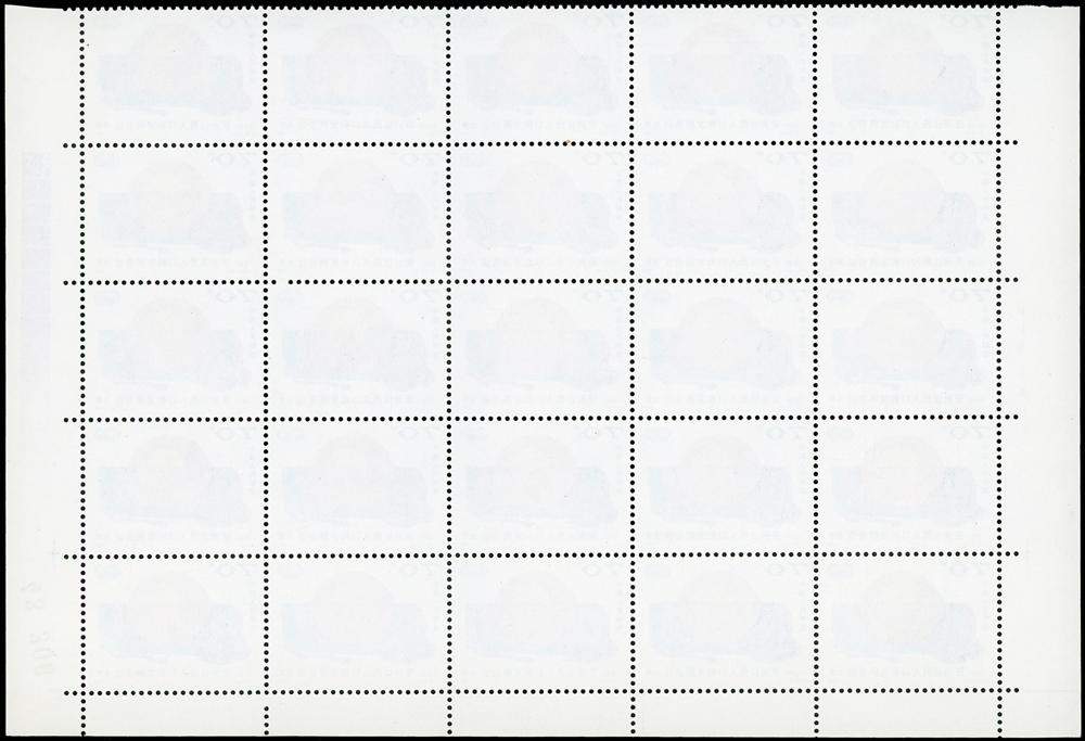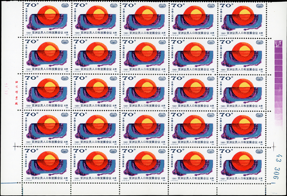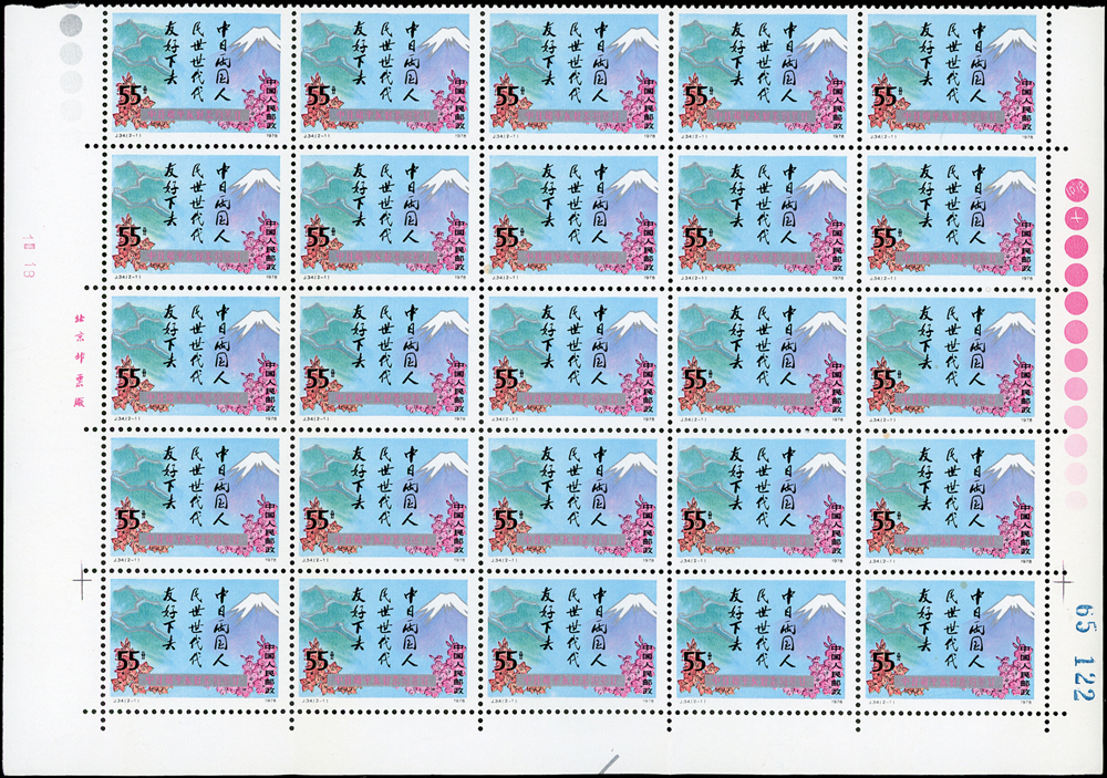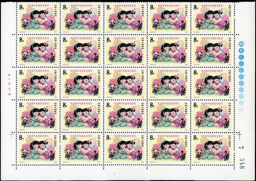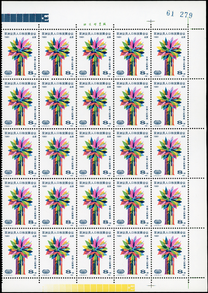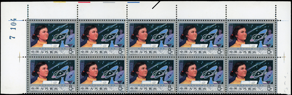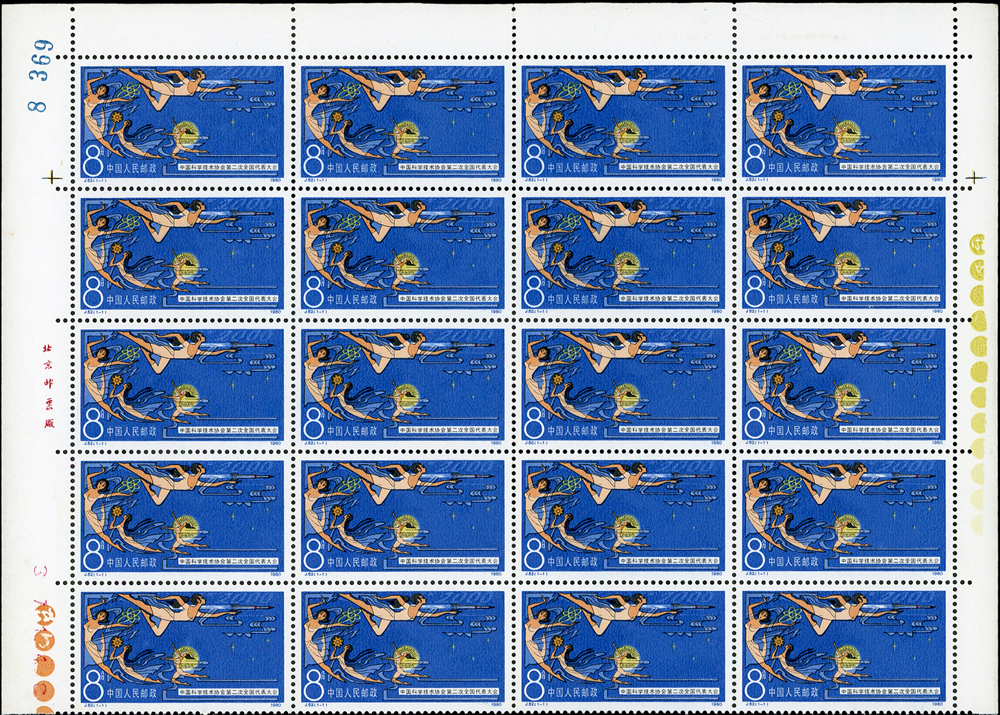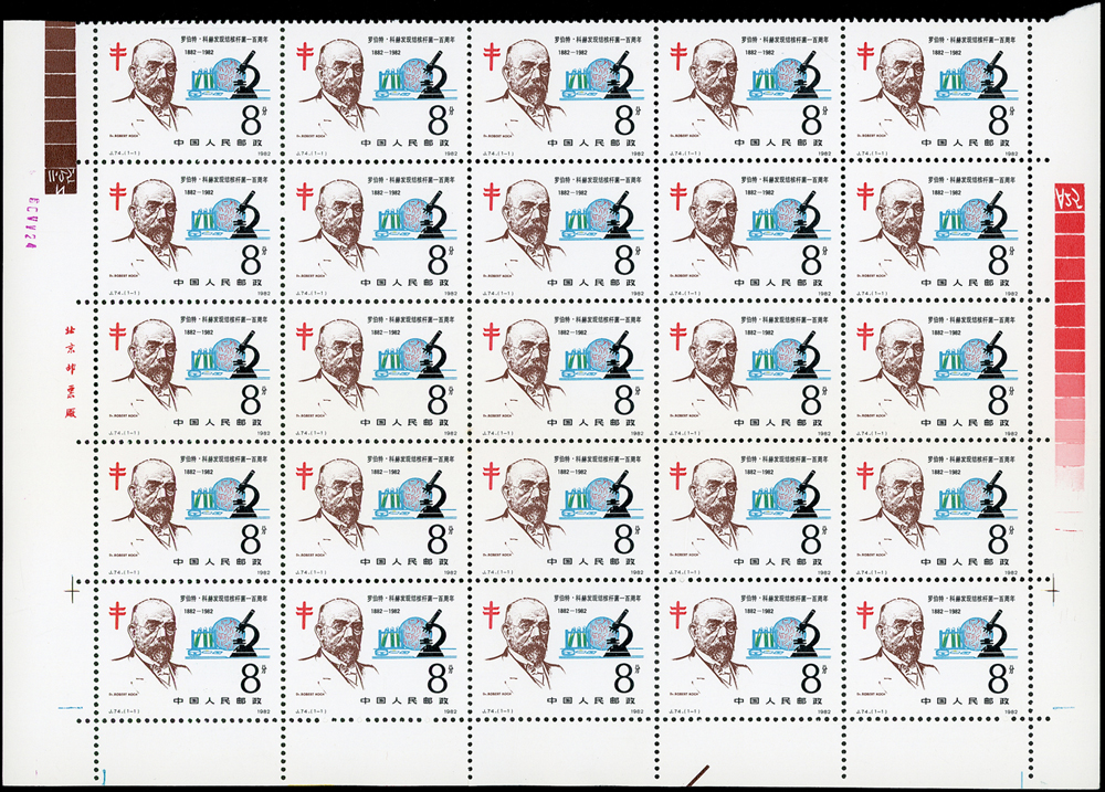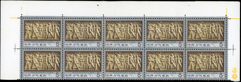 新中國J票一組,共105套,均為原膠新票,包括:(1)J34.中日和平友好條約簽訂2全下半版25方連帶三邊紙,(2-1)背少許淡斑點,VF-F;(2)J37.紀念五四運動六十週年2全10方連帶同位上三邊紙,背淡黃,VF-F;(3)J52.中國科學技術協會第二次全國代表大會1全上半版20方連帶三邊紙張號廠銘,VF;(4)J73.亞洲議員人口和發展會議2全25方連帶三邊紙張號廠銘,VF;(4)J74.羅伯特.科赫發現結核桿菌一百週年1全下半版25方連帶三邊紙廠銘,VF