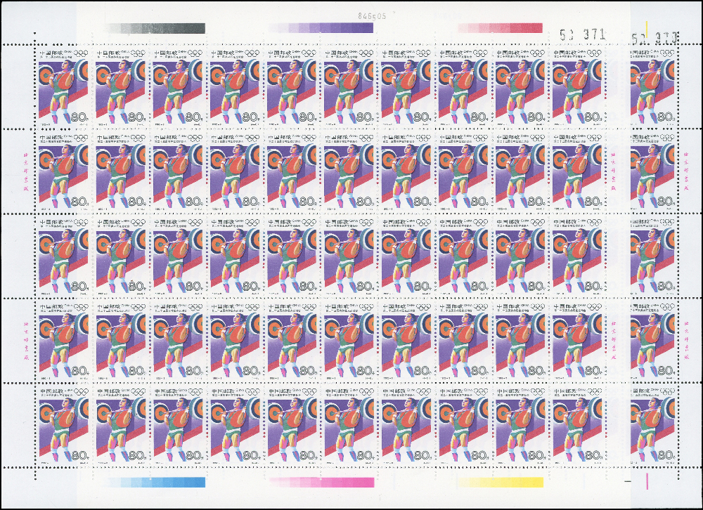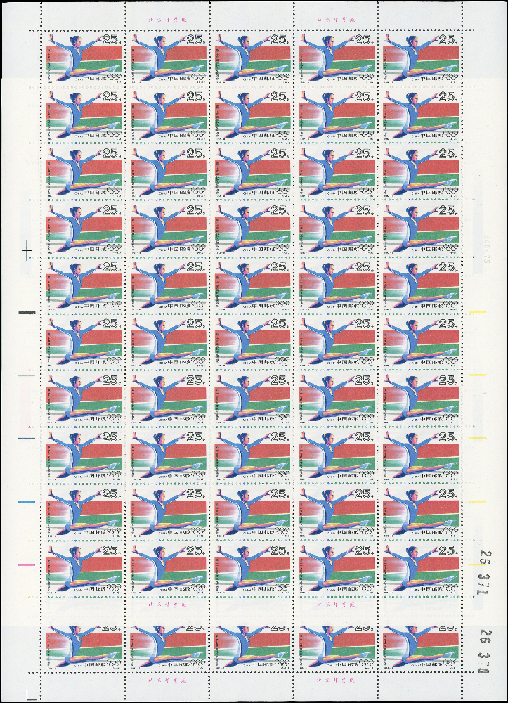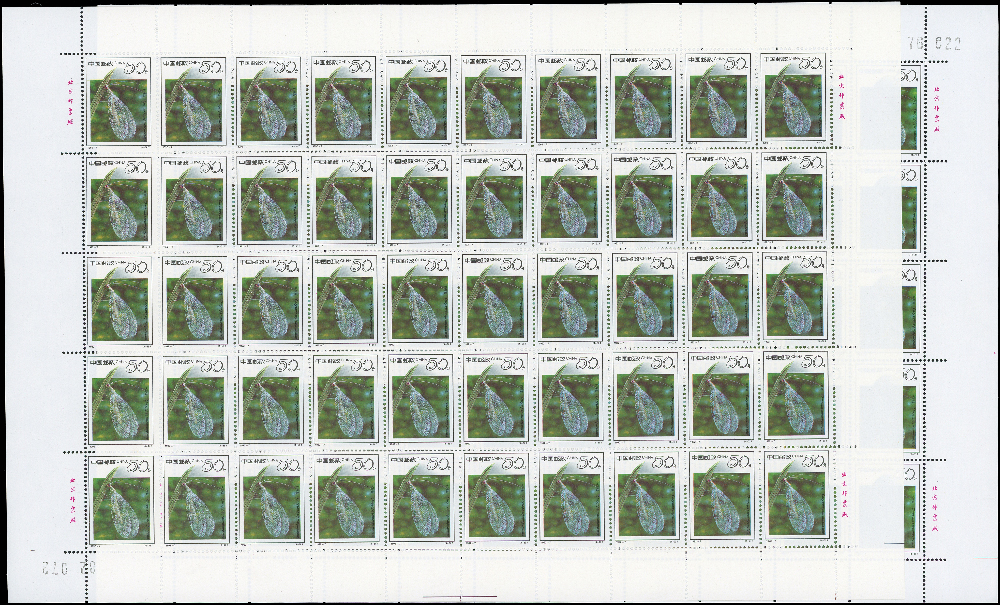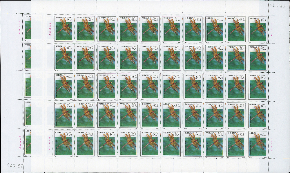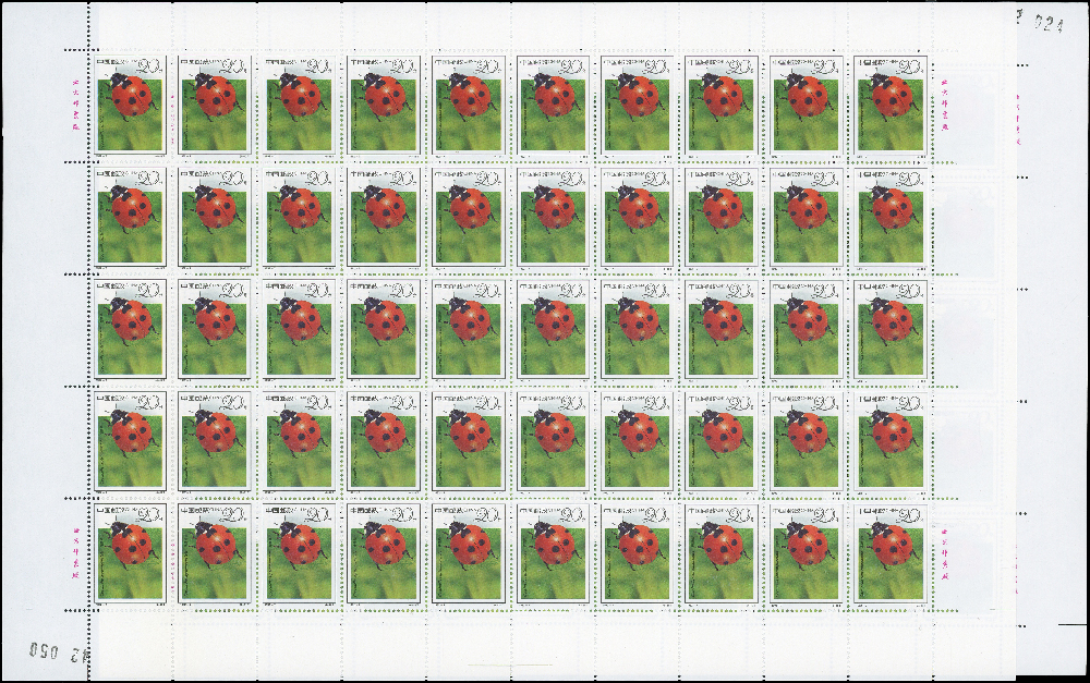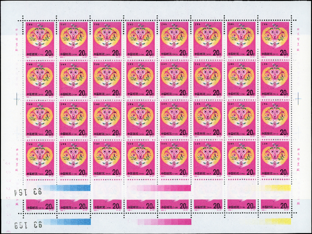 新中國1992年新票版張8版,均原膠挺版,包括:(1)1992-7.昆蟲4全2版,共100套,(4-4)一版背面有原紙雜點;(2)1992-8.第二十五屆奧林匹克運動會4全2版,共100套;(3)1992-1.壬申猴年2全2版,共64套,(2-2)背面均有1個原紙雜點;(4)1992-5.紀念在延安文藝座談會上的講話發表50週年1全2版,共100套;VF