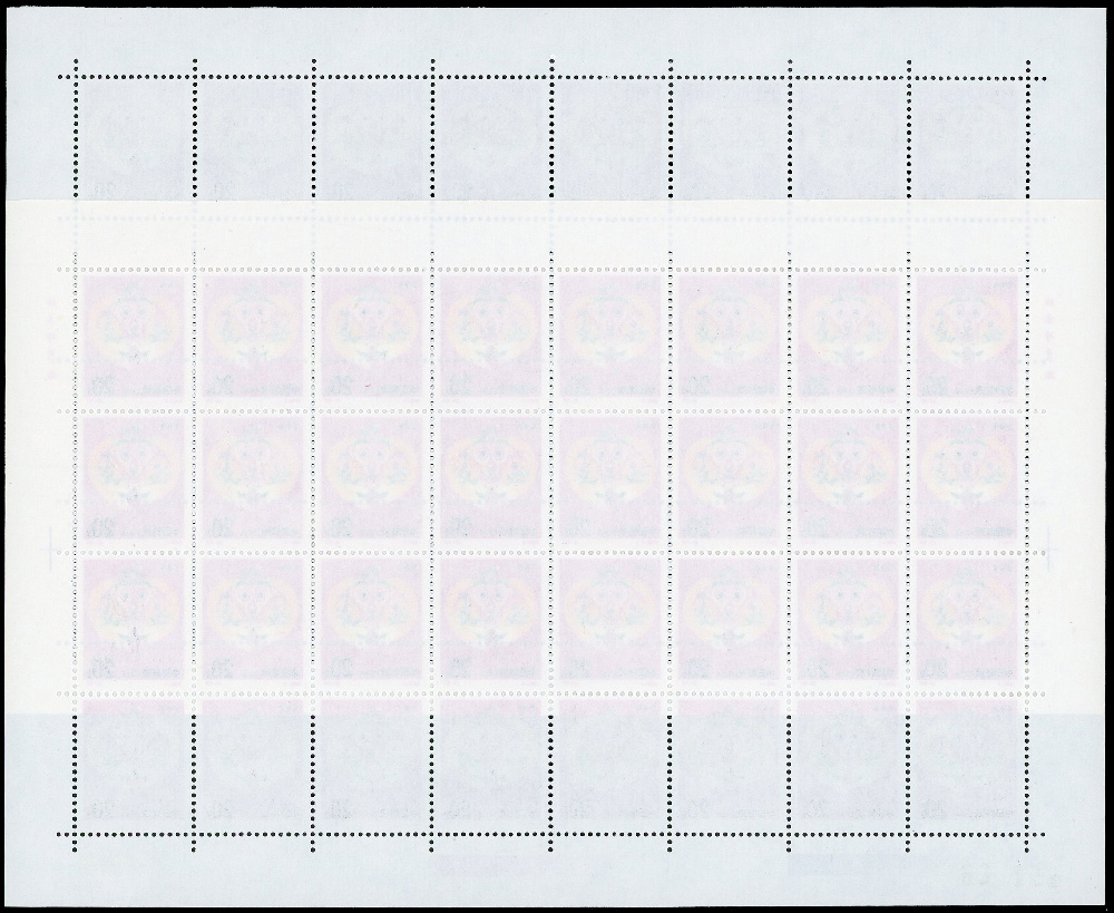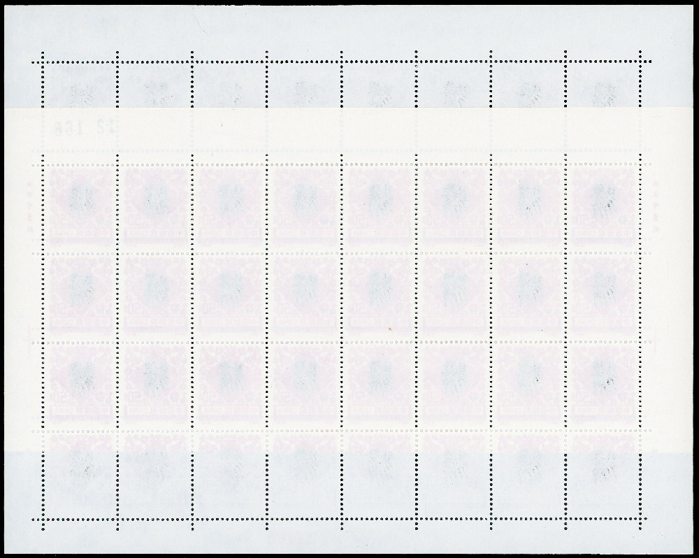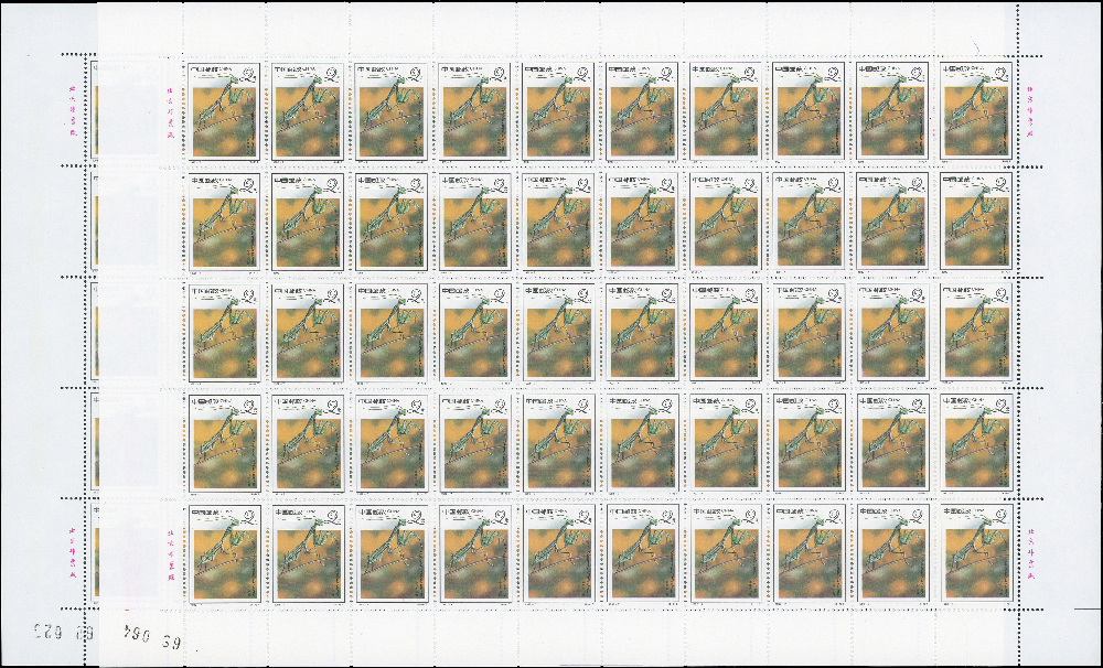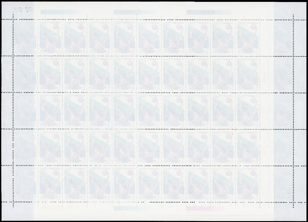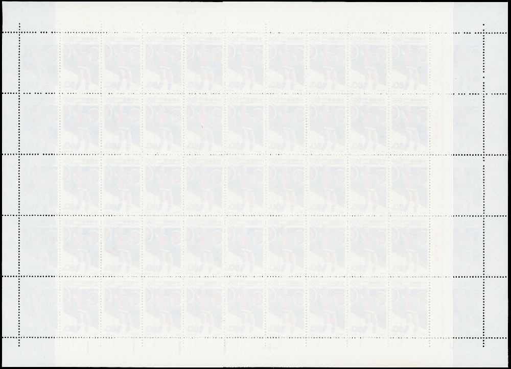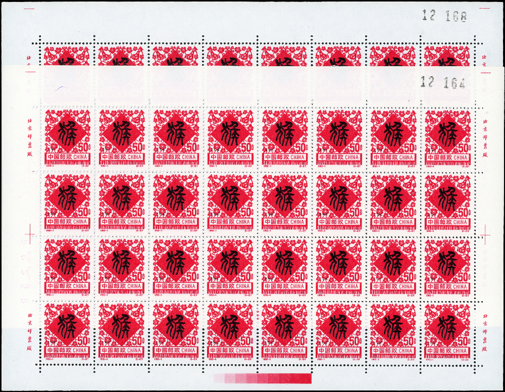 新中國1992年新票版張8版,均原膠挺版,包括:(1)1992-7.昆蟲4全2版,共100套,(4-4)一版背面有原紙雜點;(2)1992-8.第二十五屆奧林匹克運動會4全2版,共100套;(3)1992-1.壬申猴年2全2版,共64套,(2-2)背面均有1個原紙雜點;(4)1992-5.紀念在延安文藝座談會上的講話發表50週年1全2版,共100套;VF