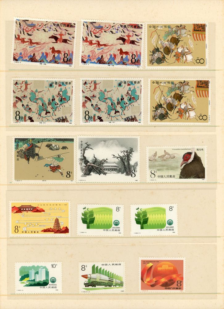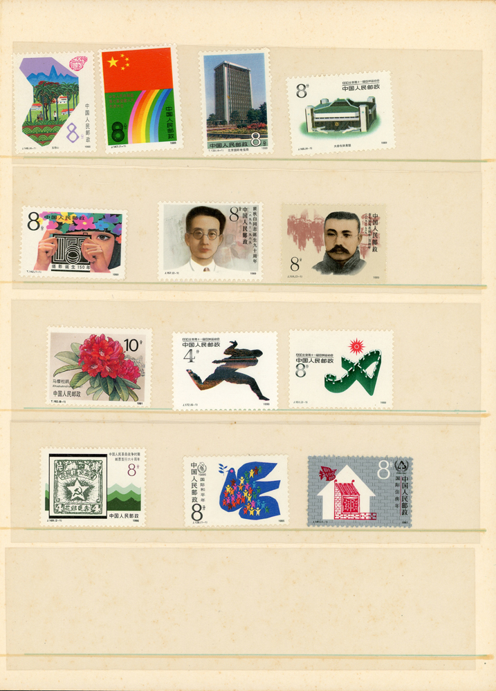 新中國精裝年度冊5本,均為新票,包括:1989年.1990年.1991年各1本,1992年2本,除1990年缺盼盼小型張外,其餘均含全年度票.型張,無評選票,贈蘇聯小全張2枚及J.T零散票.紀念張1本,品像混合,VF-F;歡迎至官網瀏覽全貌