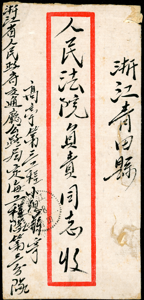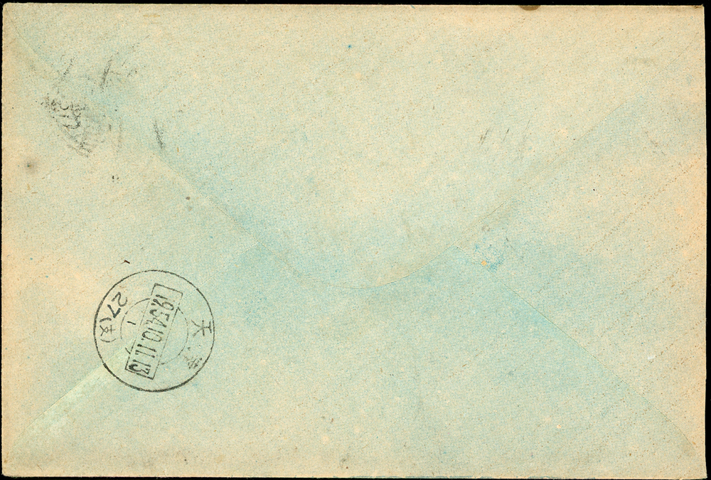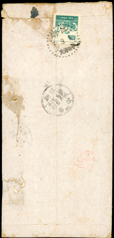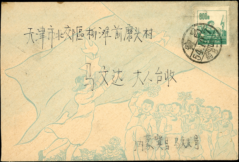 實寄封二封:(1)1954年中式封背貼不同圖案普通票800元1枚,銷浙江定海高亭X.9.4戳,旁銷浙江寧波1954.9.5戳寄本埠,正面銷浙江青田1954.9.8到戳;(2)1954年內蒙寄天津西式封,貼不同圖案普通票800元1枚,銷寶昌54.10.7戳,背銷天津1954.10.11到戳;林茂興舊藏(Page 137)