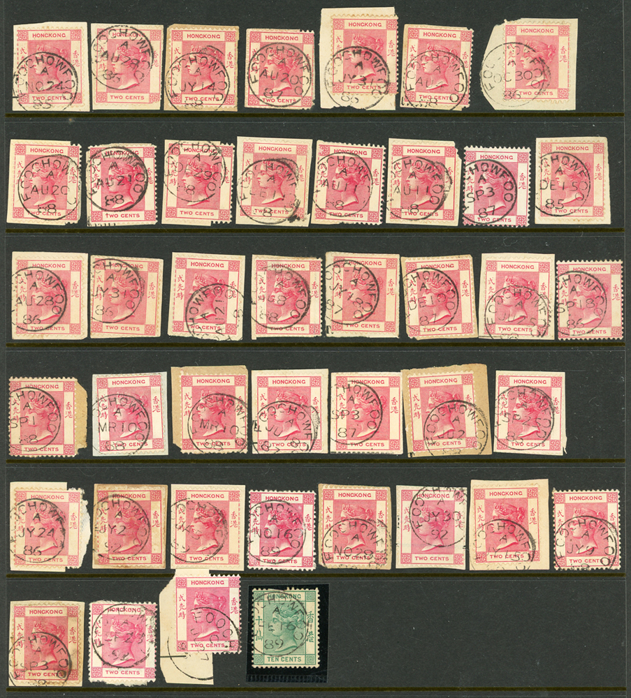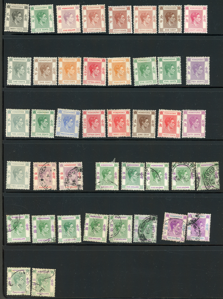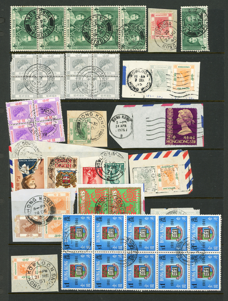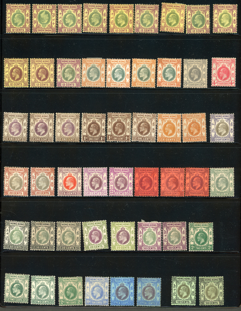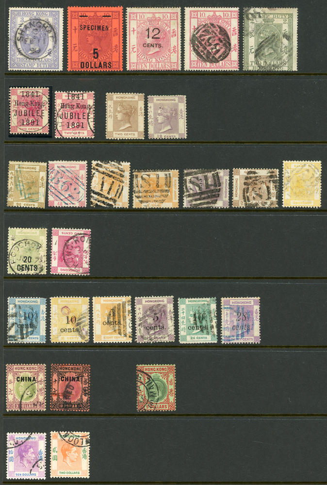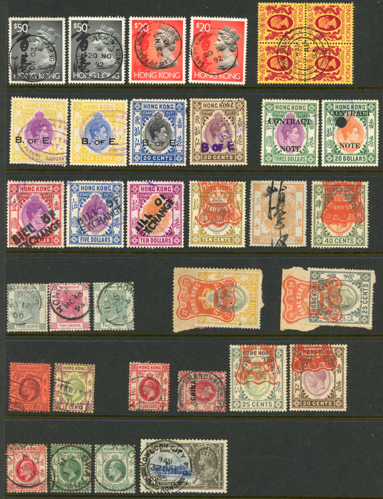 英國客郵及香港早期郵票新舊混合一冊,含新票165枚,舊票680枚,樣票1枚,整理整齊於冊中,包括有:維多利亞女皇及其改值.喬治五世及其改值.喬治六世.伊麗莎白女皇等,地名見有廣州,上海,寧波,天津,汕頭,福州,漢口等地客郵戳,,品像混合,VF-F;歡迎至官網瀏覽全貌(Page 139)