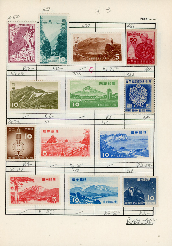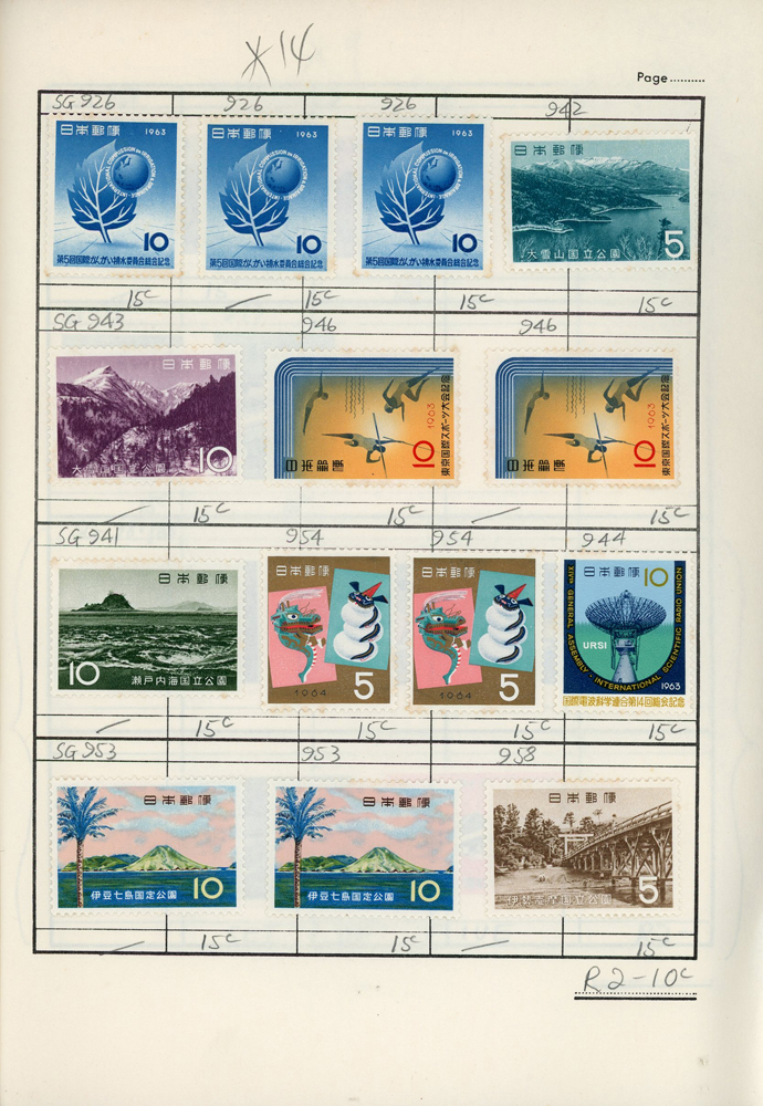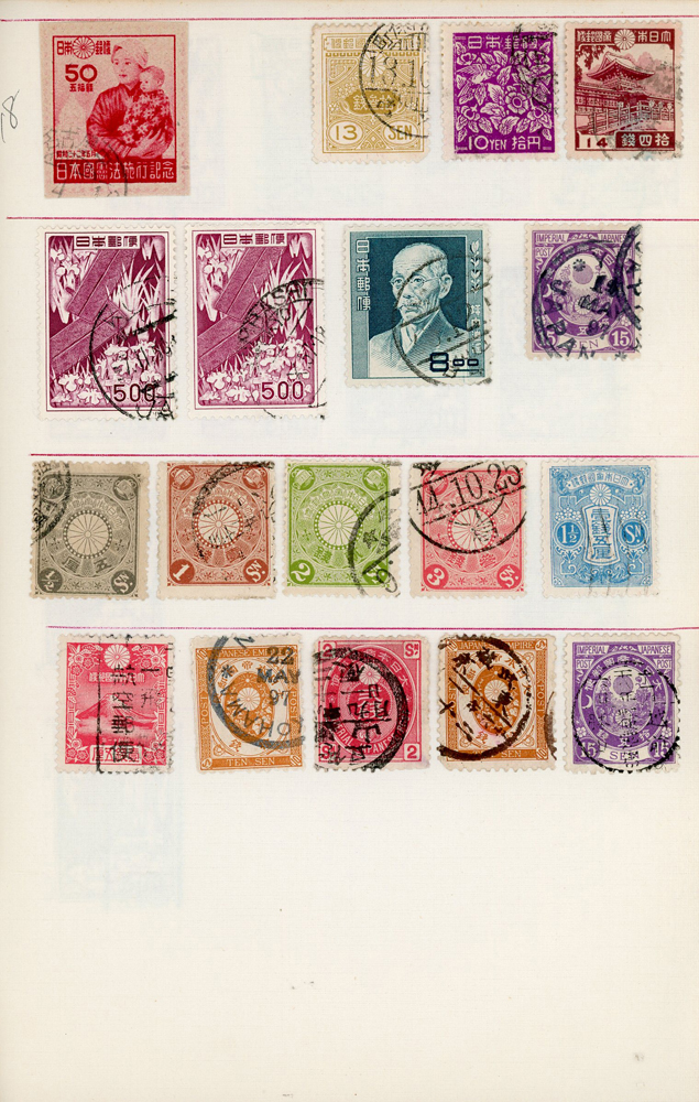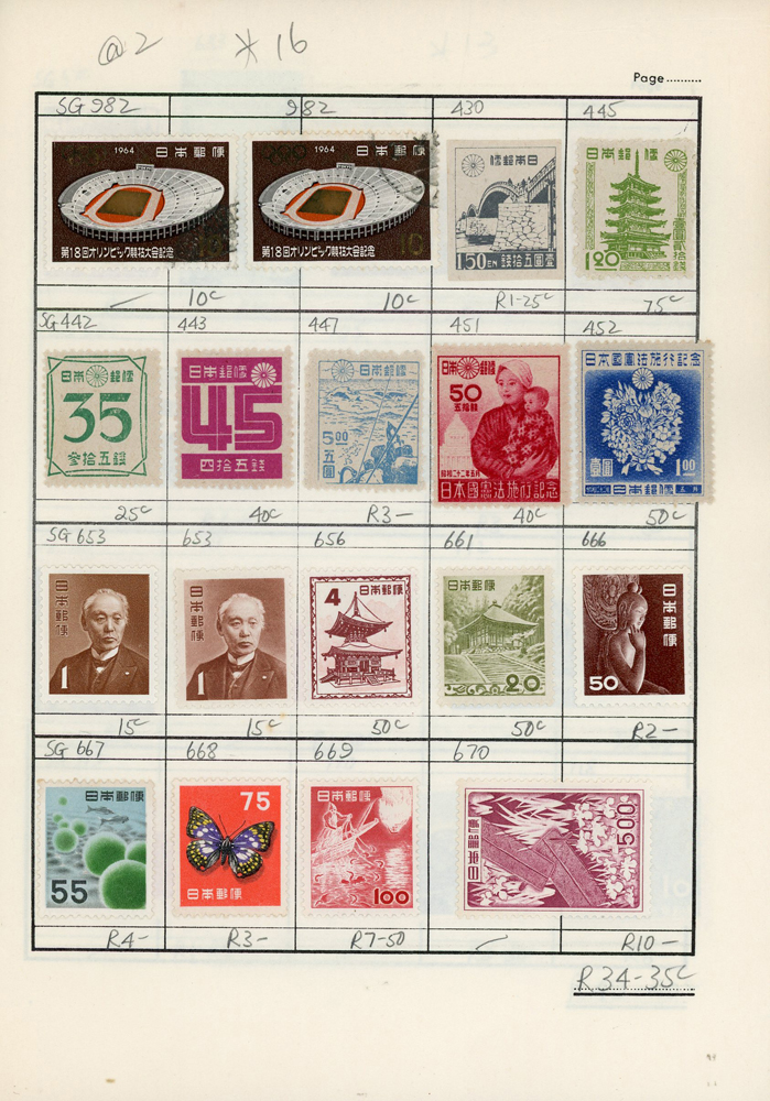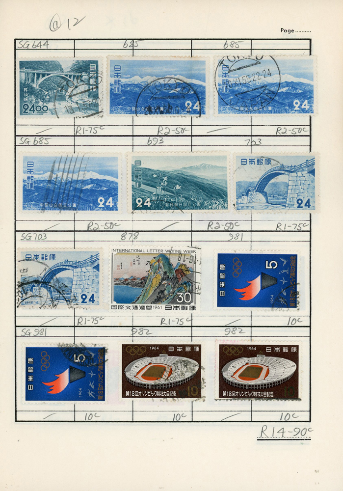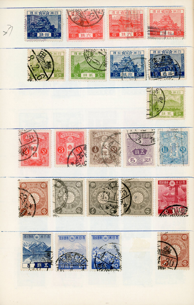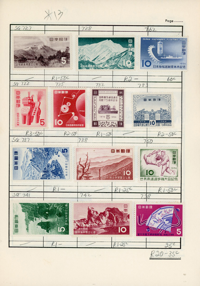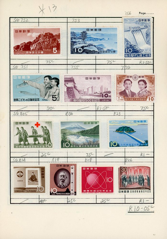 日本中期票三冊及少數國外郵票一組,含新票180枚.舊票639枚,多數為輕貼於冊上,多重複,品像混合,F-VF;歡迎至官網瀏覽全貌(Page 140)