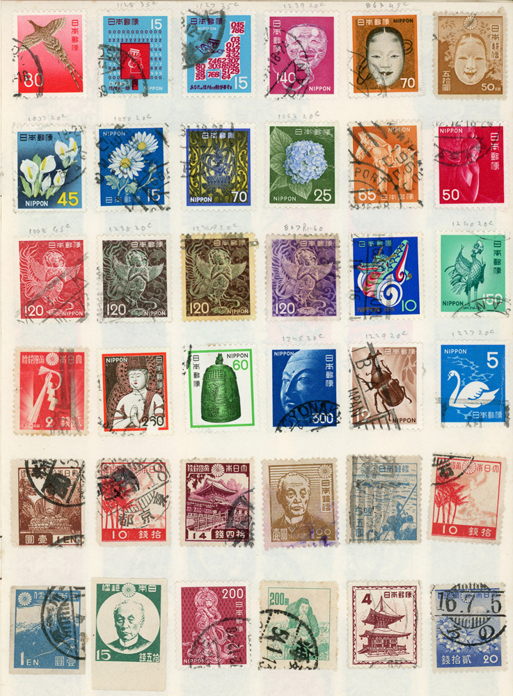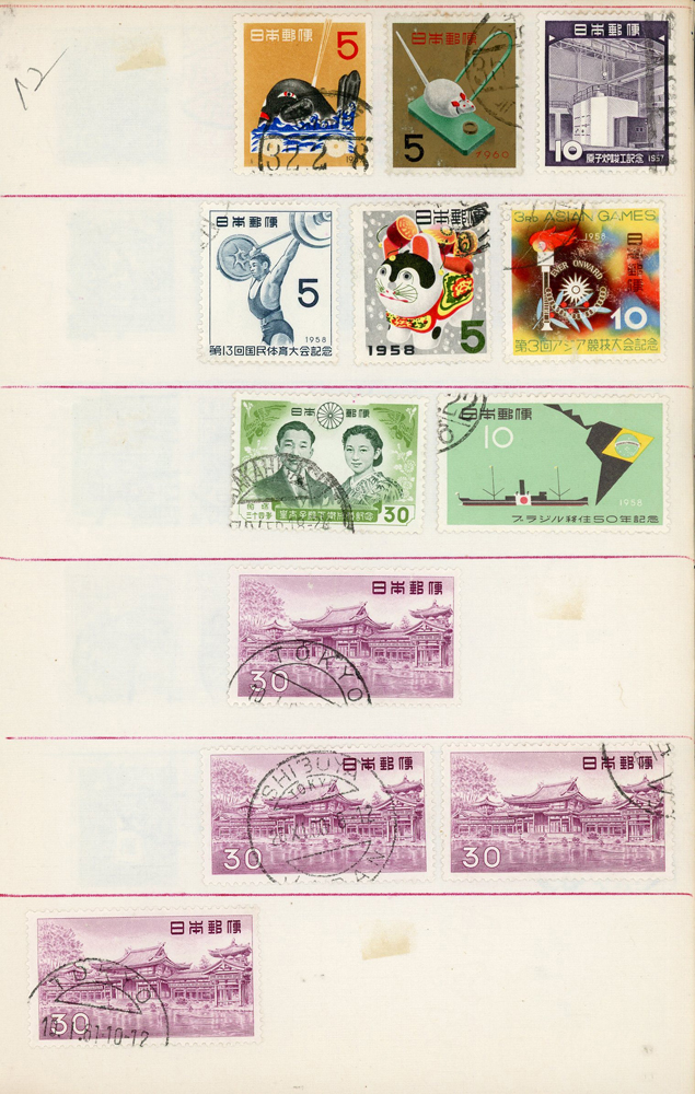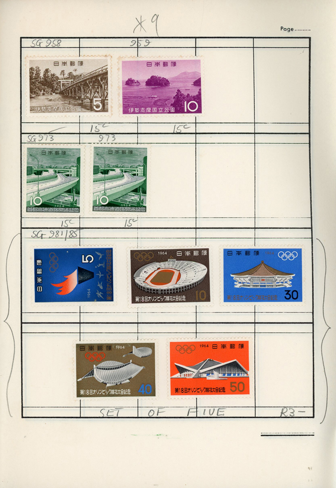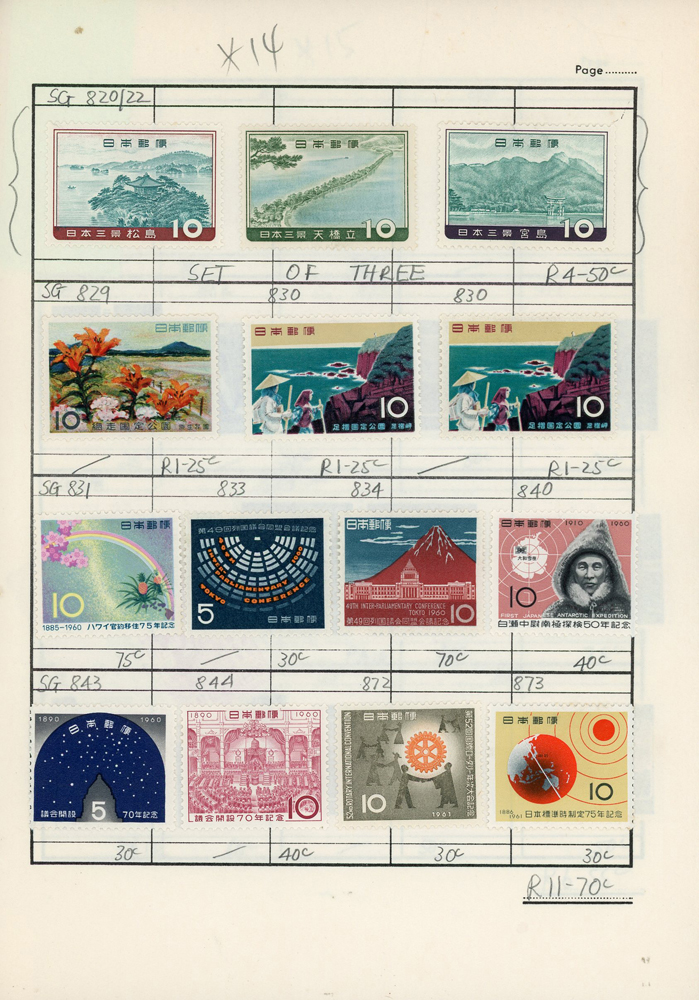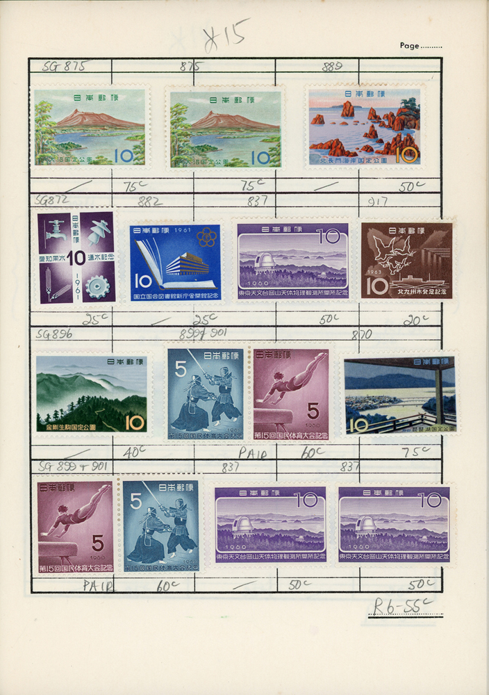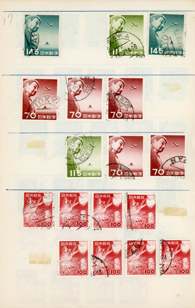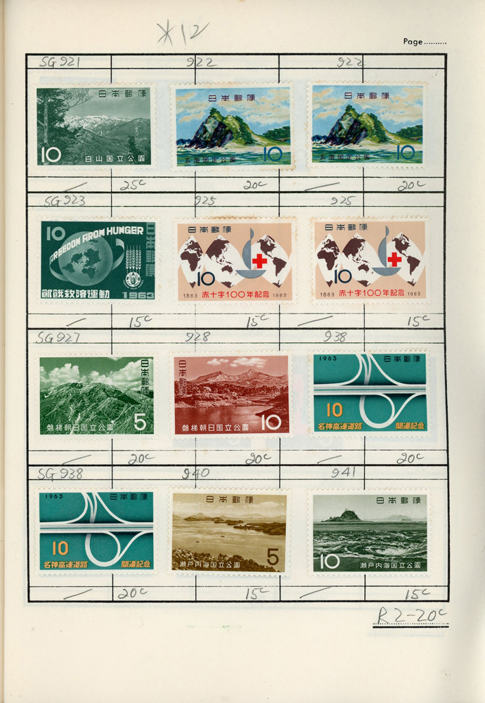 日本中期票三冊及少數國外郵票一組,含新票180枚.舊票639枚,多數為輕貼於冊上,多重複,品像混合,F-VF;歡迎至官網瀏覽全貌(Page 140)