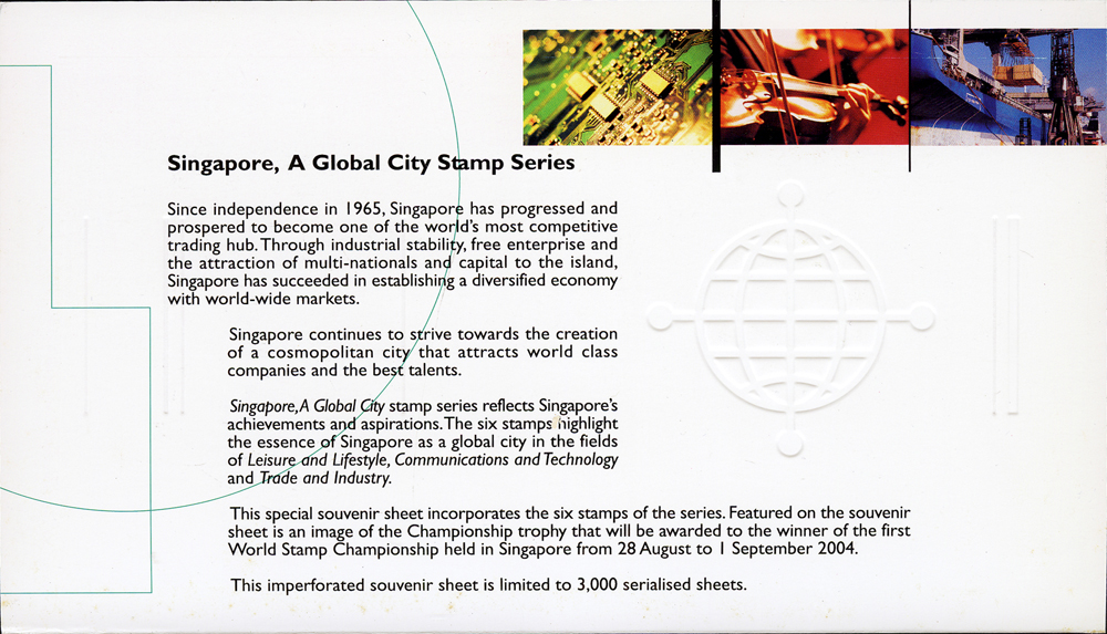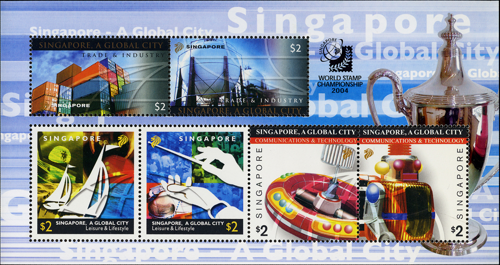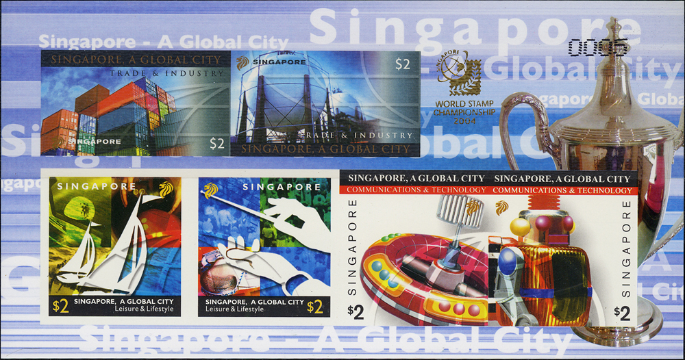 新加坡(SINGAPORE)2004年世界郵展(無齒)小全張,NO:0005號,附原封卡,VF,另贈有齒小全張1枚 註:此票發行3000枚,每枚均打印流水編號,於世展會場義賣,最低成交價為坡幣$450元(Page 140)