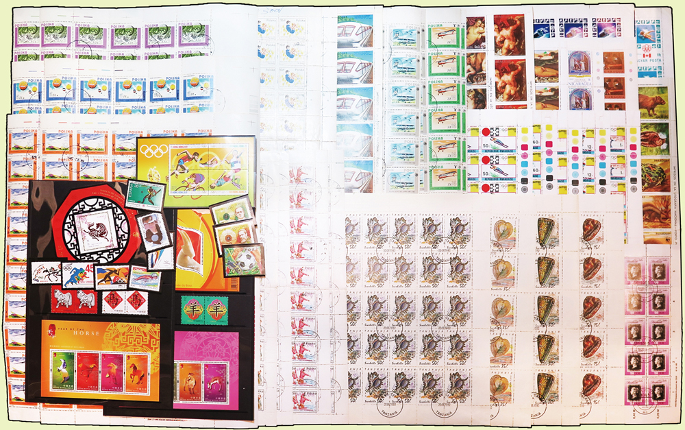 國外新舊郵票一組,含:新票版張22版,蓋銷版張17版,蓋銷半版張10組,小全張5枚(香港及加拿大馬年.羊年)及少數單枚新票,新舊混合票共2223枚,國家包括有:巴拉圭.坦尚尼亞.尼加拉瓜.盧安達.波蘭.匈牙利等,品像混合,部分背面局部淡黃斑,F-VF;歡迎至官網瀏覽全貌
