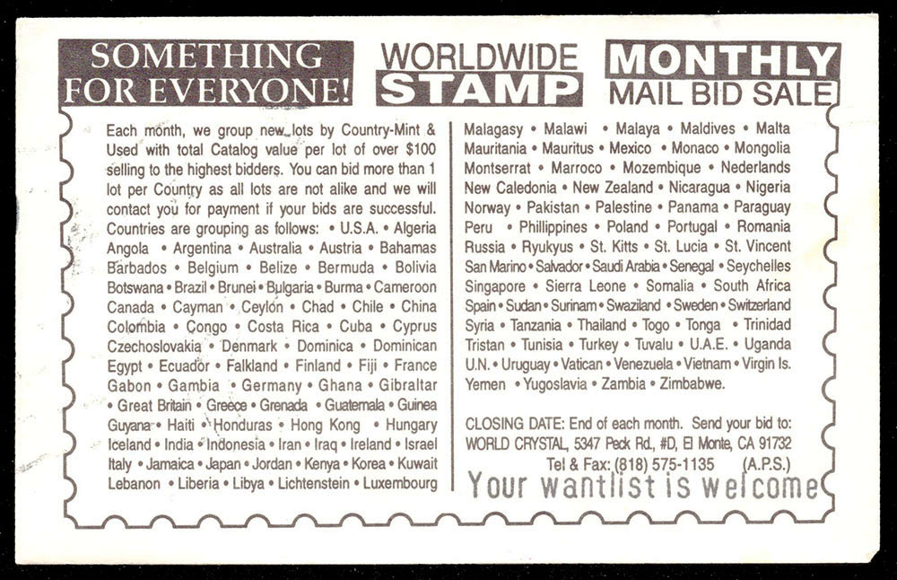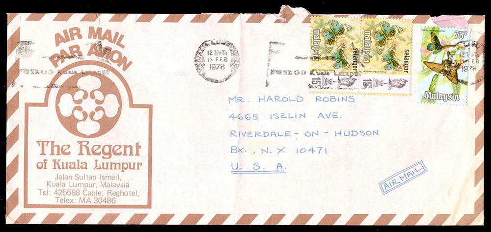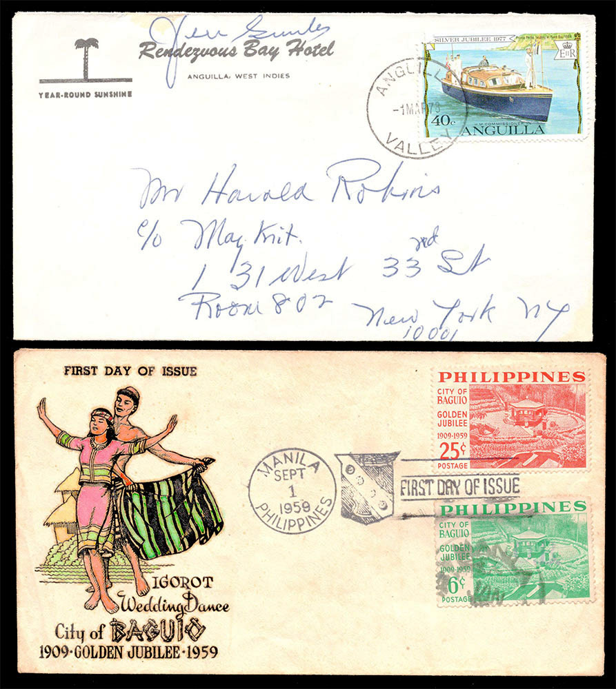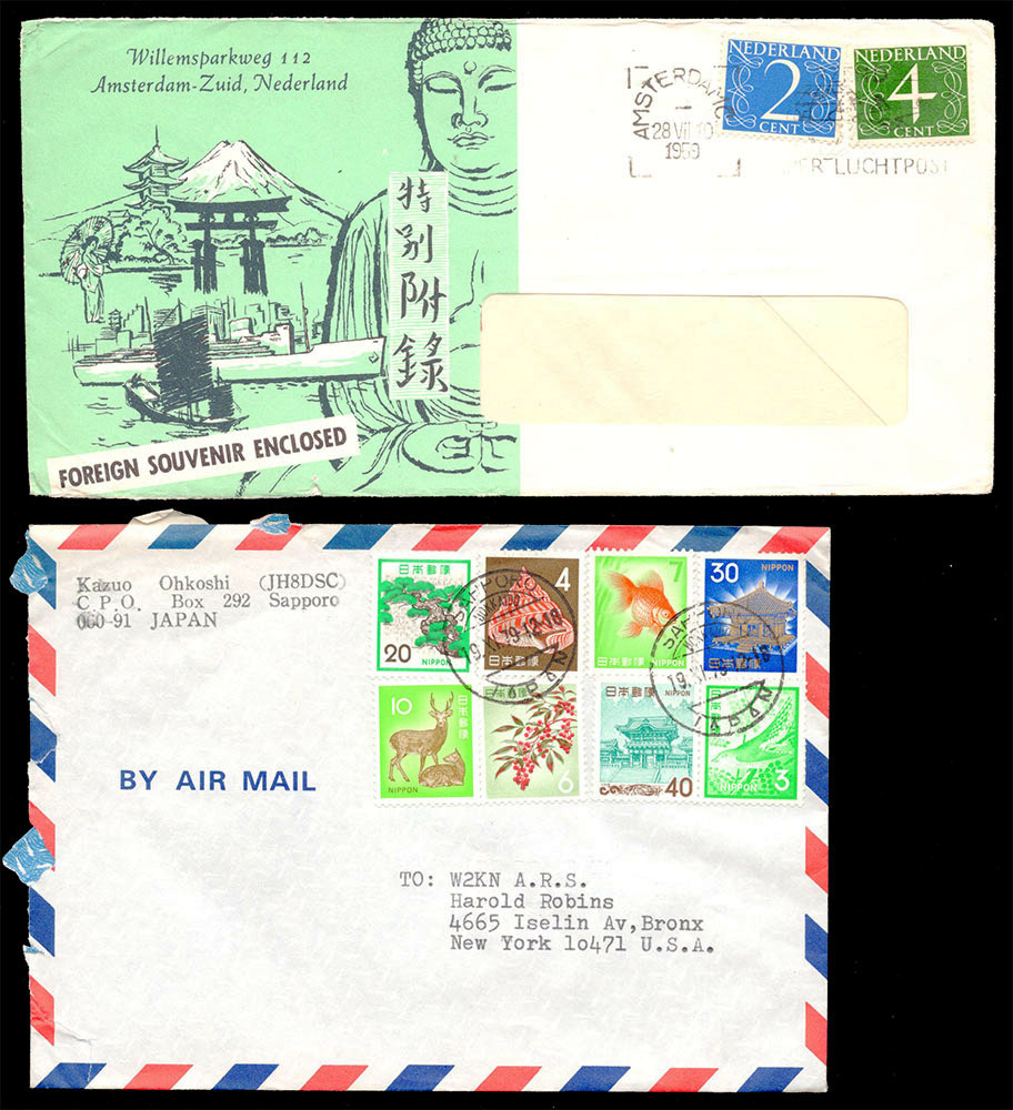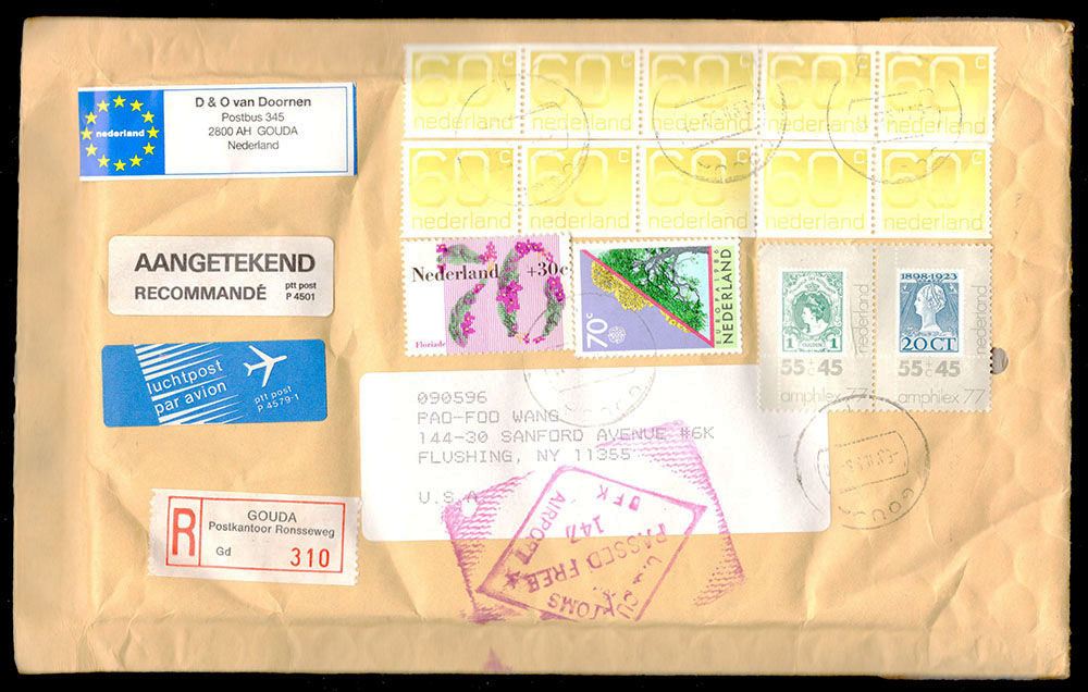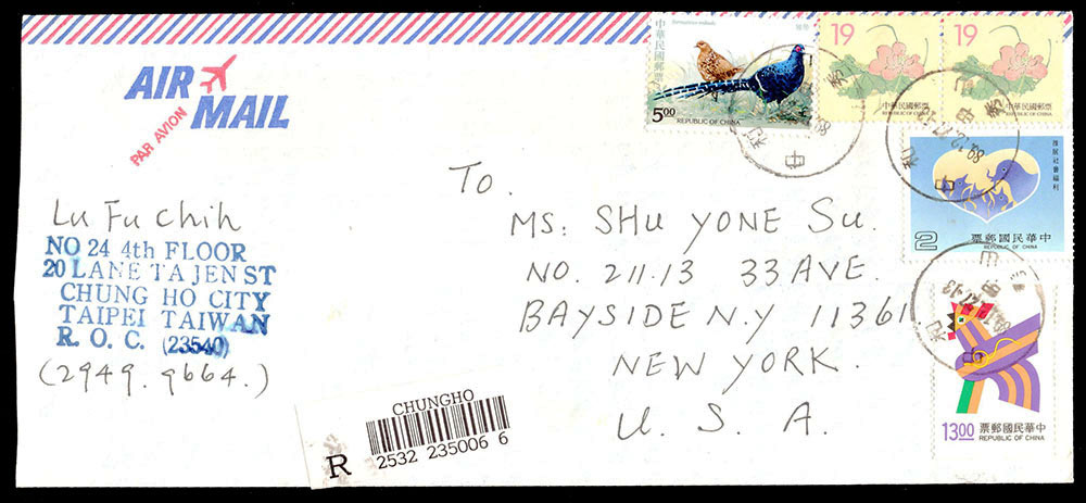 實寄封16件:(1)1993-1994年美國本地實寄封7封,貼專題票,票戳俱全;另有一件近期台北寄美國航掛封;(2)1959-1993年日本,馬來西亞,泰國,荷蘭,菲律賓實寄封8封,貼專題票,票戳俱全