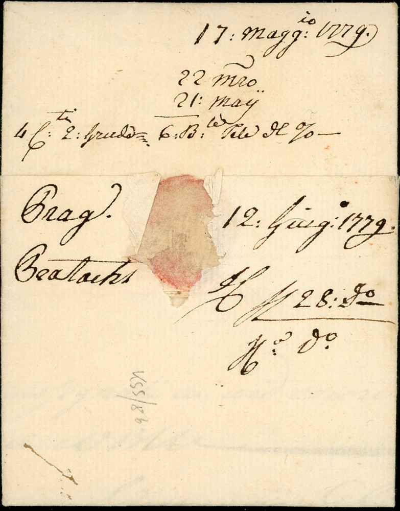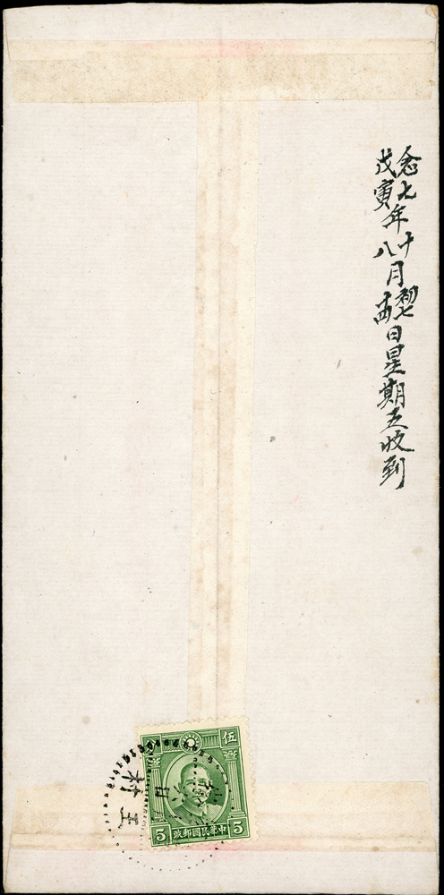 實寄封三封:(1)1846年英國本地實寄封,貼紅便士one penny無齒票1枚銷戳,封微撕損;(2)1779年布拉格寄義大利里窩那封,經佛羅倫斯遭退回;(3)1938年中式封背貼國父像倫敦一版5分1枚,銷安徽王村日期不清寄本埠;林茂興舊藏(Page 141)
