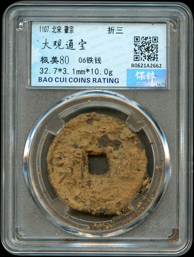 錢幣分類 中國錢幣中國歷代古錢(8001-8022)中國機制銀幣(8023-8108)中國機制銅幣/鎳幣/鋁幣(8109-8142)偽政權錢幣(8143-8144)台灣銀行~流通幣(8145-8187)台灣銀行~試鑄幣(8188)台灣銀行~紀念幣(章)(8189-8210)中國人民銀行~流通幣(8211-8217)中國人民銀行~金銀紀念幣(8218-8236)各時期~紀念章(8238-8258)中國香港錢幣(8259-8263)世界各國錢幣日本錢幣(8264-8283)世界各國錢幣(A~Z)(8284-8309)晚到項次~新中國金.銀幣(8825-8827) 中國錢幣 ↳中國歷代古錢(8001-8022) ↳中國機制銀幣(8023-8108) ↳中國機制銅幣/鎳幣/鋁幣(8109-8142) ↳偽政權錢幣(8143-8144) ↳台灣銀行~流通幣(8145-8187) ↳台灣銀行~試鑄幣(8188) ↳台灣銀行~紀念幣(章)(8189-8210) ↳中國人民銀行~流通幣(8211-8217) ↳中國人民銀行~金銀紀念幣(8218-8236) ↳各時期~紀念章(8238-8258) ↳中國香港錢幣(8259-8263)世界各國錢幣 ↳日本錢幣(8264-8283) ↳世界各國錢幣(A~Z)(8284-8309) ↳晚到項次~新中國金.銀幣(8825-8827) 點大圖放大展示,點小圖切換 古錢二枚:(1)北宋元祐通寶鐵錢,折三,南京保粹CCGA 極美82;(2)北宋大觀通寶鐵錢,折三,南京保粹CCGA 極美80(Page 4) 結標時間 2025-12-16 10:03:00 拍品編號:8010 起拍價:NT$100 當前價:NT$100 自動出價 直接出價 出價 系統將按出價級數,依序為您比(出)價至上限金額 提醒您:直接出價後不可將金額改低,只能改高,蟠龍無法降低您的出價,最高出價者無法取消出價 (查看出價說明) 得標說明:需按得標價另加10%佣金 當前加價幅度:NT$100元 (查看加價級數表) 回上頁 線上出價記錄 線上 1 人次,書面 0 人次 競價客戶 所在地 出價時間 出價金額 出價方式 l******6 (領先) 台灣 2025-11-26 13:27:08 NT$100 自動出價 問與答 目前尚無提問 我要提問 請先登入會員
