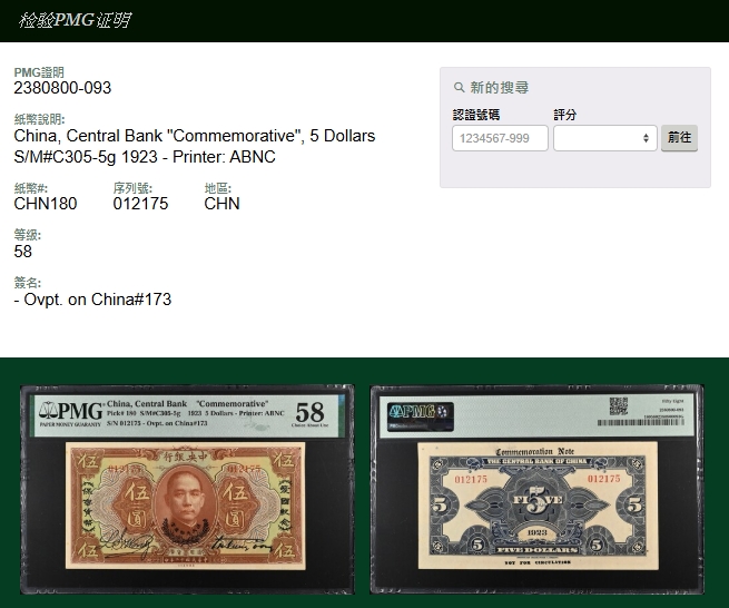 紙鈔分類 中國紙鈔清代~紙幣/股票/債券(8310-8323)『楊展孝』收藏~中央銀行銀元兑換券(8324-8380)民國~中央銀行紙幣(8381-8424)民國~中國銀行(8425-8448)民國~交通銀行(8449-8459)民國~中國農民銀行(8460-8462)民國~各省銀行券(8463-8491)民國~軍用鈔票(8492-8504)民國~地方券/錢莊票(8505-8510)民國~偽政權紙幣(8511-8519)民國金融票證~債券/股票(8520-8543)臺灣銀行~日治時期(8544-8552)臺灣銀行~老台幣(8553-8577)臺灣銀行~新台幣(8578-8679)臺灣銀行~限金門/限馬祖通用(8680-8694)臺灣銀行~限大陳島通用(8695-8696)臺灣/中央銀行~趣味號(8697-8706)中央銀行~三連鈔(8707-8709)臺灣各式金融票證(8710-8715)日本『山崎 修之亮』收藏~中國及外國紙幣(8716-8738)新中國紙幣解放區時期紙幣/債券(8739-8740)中國人民銀行~各版人民幣/外匯券/金融票證(8741-8759)世界各國紙幣日本紙幣(8760-8773)世界各國紙幣(A~Z)(8774-8783) 中國紙鈔 ↳清代~紙幣/股票/債券(8310-8323) ↳『楊展孝』收藏~中央銀行銀元兑換券(8324-8380) ↳民國~中央銀行紙幣(8381-8424) ↳民國~中國銀行(8425-8448) ↳民國~交通銀行(8449-8459) ↳民國~中國農民銀行(8460-8462) ↳民國~各省銀行券(8463-8491) ↳民國~軍用鈔票(8492-8504) ↳民國~地方券/錢莊票(8505-8510) ↳民國~偽政權紙幣(8511-8519) ↳民國金融票證~債券/股票(8520-8543) ↳臺灣銀行~日治時期(8544-8552) ↳臺灣銀行~老台幣(8553-8577) ↳臺灣銀行~新台幣(8578-8679) ↳臺灣銀行~限金門/限馬祖通用(8680-8694) ↳臺灣銀行~限大陳島通用(8695-8696) ↳臺灣/中央銀行~趣味號(8697-8706) ↳中央銀行~三連鈔(8707-8709) ↳臺灣各式金融票證(8710-8715) ↳日本『山崎 修之亮』收藏~中國及外國紙幣(8716-8738)新中國紙幣 ↳解放區時期紙幣/債券(8739-8740) ↳中國人民銀行~各版人民幣/外匯券/金融票證(8741-8759)世界各國紙幣 ↳日本紙幣(8760-8773) ↳世界各國紙幣(A~Z)(8774-8783) 點大圖放大展示,點小圖切換 3 中央銀行十二年5元愛國紀念券,鈔號012175。PMG 58。楊著「中央銀行銀元兑換券」第18頁(Page 37) 結標時間 2025-12-16 11:49:00 拍品編號:8328 起拍價:NT$48000 當前價:NT$48000 自動出價 直接出價 出價 系統將按出價級數,依序為您比(出)價至上限金額 提醒您:直接出價後不可將金額改低,只能改高,蟠龍無法降低您的出價,最高出價者無法取消出價 (查看出價說明) 得標說明:需按得標價另加10%佣金 當前加價幅度:NT$0元 (查看加價級數表) 回上頁 線上出價記錄 線上 0 人次,書面 0 人次 競價客戶 所在地 出價時間 出價金額 出價方式 問與答 目前尚無提問 我要提問 請先登入會員