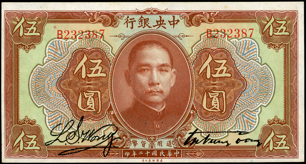 紙鈔分類 中國紙鈔清代~紙幣/股票/債券(8310-8323)『楊展孝』收藏~中央銀行銀元兑換券(8324-8380)民國~中央銀行紙幣(8381-8424)民國~中國銀行(8425-8448)民國~交通銀行(8449-8459)民國~中國農民銀行(8460-8462)民國~各省銀行券(8463-8491)民國~軍用鈔票(8492-8504)民國~地方券/錢莊票(8505-8510)民國~偽政權紙幣(8511-8519)民國金融票證~債券/股票(8520-8543)臺灣銀行~日治時期(8544-8552)臺灣銀行~老台幣(8553-8577)臺灣銀行~新台幣(8578-8679)臺灣銀行~限金門/限馬祖通用(8680-8694)臺灣銀行~限大陳島通用(8695-8696)臺灣/中央銀行~趣味號(8697-8706)中央銀行~三連鈔(8707-8709)臺灣各式金融票證(8710-8715)日本『山崎 修之亮』收藏~中國及外國紙幣(8716-8738)新中國紙幣解放區時期紙幣/債券(8739-8740)中國人民銀行~各版人民幣/外匯券/金融票證(8741-8759)世界各國紙幣日本紙幣(8760-8773)世界各國紙幣(A~Z)(8774-8783) 中國紙鈔 ↳清代~紙幣/股票/債券(8310-8323) ↳『楊展孝』收藏~中央銀行銀元兑換券(8324-8380) ↳民國~中央銀行紙幣(8381-8424) ↳民國~中國銀行(8425-8448) ↳民國~交通銀行(8449-8459) ↳民國~中國農民銀行(8460-8462) ↳民國~各省銀行券(8463-8491) ↳民國~軍用鈔票(8492-8504) ↳民國~地方券/錢莊票(8505-8510) ↳民國~偽政權紙幣(8511-8519) ↳民國金融票證~債券/股票(8520-8543) ↳臺灣銀行~日治時期(8544-8552) ↳臺灣銀行~老台幣(8553-8577) ↳臺灣銀行~新台幣(8578-8679) ↳臺灣銀行~限金門/限馬祖通用(8680-8694) ↳臺灣銀行~限大陳島通用(8695-8696) ↳臺灣/中央銀行~趣味號(8697-8706) ↳中央銀行~三連鈔(8707-8709) ↳臺灣各式金融票證(8710-8715) ↳日本『山崎 修之亮』收藏~中國及外國紙幣(8716-8738)新中國紙幣 ↳解放區時期紙幣/債券(8739-8740) ↳中國人民銀行~各版人民幣/外匯券/金融票證(8741-8759)世界各國紙幣 ↳日本紙幣(8760-8773) ↳世界各國紙幣(A~Z)(8774-8783) 點大圖放大展示,點小圖切換 1 中央銀行十二年5元,鈔號B232387 (丙券)。顏色鮮明,品相較好,僅中間一輕折。約85成新。楊著「中央銀行銀元兑換券」第17頁(Page 39) 結標時間 2025-12-16 11:51:00 拍品編號:8334 起拍價:NT$35000 當前價:NT$35000 自動出價 直接出價 出價 系統將按出價級數,依序為您比(出)價至上限金額 提醒您:直接出價後不可將金額改低,只能改高,蟠龍無法降低您的出價,最高出價者無法取消出價 (查看出價說明) 得標說明:需按得標價另加10%佣金 當前加價幅度:NT$0元 (查看加價級數表) 回上頁 線上出價記錄 線上 0 人次,書面 0 人次 競價客戶 所在地 出價時間 出價金額 出價方式 問與答 目前尚無提問 我要提問 請先登入會員