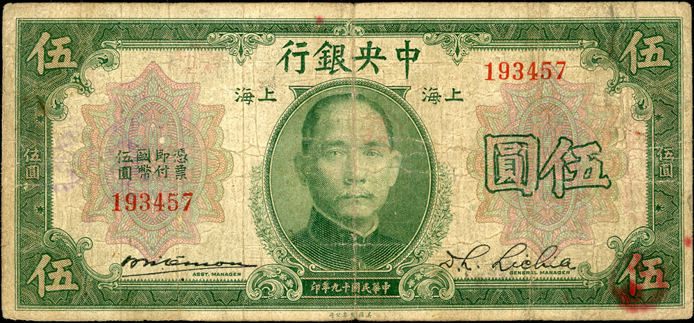 紙鈔分類 中國紙鈔清代~紙幣/股票/債券(8310-8323)『楊展孝』收藏~中央銀行銀元兑換券(8324-8380)民國~中央銀行紙幣(8381-8424)民國~中國銀行(8425-8448)民國~交通銀行(8449-8459)民國~中國農民銀行(8460-8462)民國~各省銀行券(8463-8491)民國~軍用鈔票(8492-8504)民國~地方券/錢莊票(8505-8510)民國~偽政權紙幣(8511-8519)民國金融票證~債券/股票(8520-8543)臺灣銀行~日治時期(8544-8552)臺灣銀行~老台幣(8553-8577)臺灣銀行~新台幣(8578-8679)臺灣銀行~限金門/限馬祖通用(8680-8694)臺灣銀行~限大陳島通用(8695-8696)臺灣/中央銀行~趣味號(8697-8706)中央銀行~三連鈔(8707-8709)臺灣各式金融票證(8710-8715)日本『山崎 修之亮』收藏~中國及外國紙幣(8716-8738)新中國紙幣解放區時期紙幣/債券(8739-8740)中國人民銀行~各版人民幣/外匯券/金融票證(8741-8759)世界各國紙幣日本紙幣(8760-8773)世界各國紙幣(A~Z)(8774-8783) 中國紙鈔 ↳清代~紙幣/股票/債券(8310-8323) ↳『楊展孝』收藏~中央銀行銀元兑換券(8324-8380) ↳民國~中央銀行紙幣(8381-8424) ↳民國~中國銀行(8425-8448) ↳民國~交通銀行(8449-8459) ↳民國~中國農民銀行(8460-8462) ↳民國~各省銀行券(8463-8491) ↳民國~軍用鈔票(8492-8504) ↳民國~地方券/錢莊票(8505-8510) ↳民國~偽政權紙幣(8511-8519) ↳民國金融票證~債券/股票(8520-8543) ↳臺灣銀行~日治時期(8544-8552) ↳臺灣銀行~老台幣(8553-8577) ↳臺灣銀行~新台幣(8578-8679) ↳臺灣銀行~限金門/限馬祖通用(8680-8694) ↳臺灣銀行~限大陳島通用(8695-8696) ↳臺灣/中央銀行~趣味號(8697-8706) ↳中央銀行~三連鈔(8707-8709) ↳臺灣各式金融票證(8710-8715) ↳日本『山崎 修之亮』收藏~中國及外國紙幣(8716-8738)新中國紙幣 ↳解放區時期紙幣/債券(8739-8740) ↳中國人民銀行~各版人民幣/外匯券/金融票證(8741-8759)世界各國紙幣 ↳日本紙幣(8760-8773) ↳世界各國紙幣(A~Z)(8774-8783) 點大圖放大展示,點小圖切換 2 中央銀行十九年5元,鈔號193457,李覺、席德懋簽名。此券總共發行2億多枚,無字軌的很罕見,這是很小的號碼。約2成新。楊著「中央銀行銀元兑換券」第127頁(Page 51) 結標時間 2025-12-16 12:05:20 拍品編號:8377 起拍價:NT$1400 當前價:NT$1400 自動出價 直接出價 出價 系統將按出價級數,依序為您比(出)價至上限金額 提醒您:直接出價後不可將金額改低,只能改高,蟠龍無法降低您的出價,最高出價者無法取消出價 (查看出價說明) 得標說明:需按得標價另加10%佣金 當前加價幅度:NT$0元 (查看加價級數表) 回上頁 線上出價記錄 線上 0 人次,書面 0 人次 競價客戶 所在地 出價時間 出價金額 出價方式 問與答 目前尚無提問 我要提問 請先登入會員