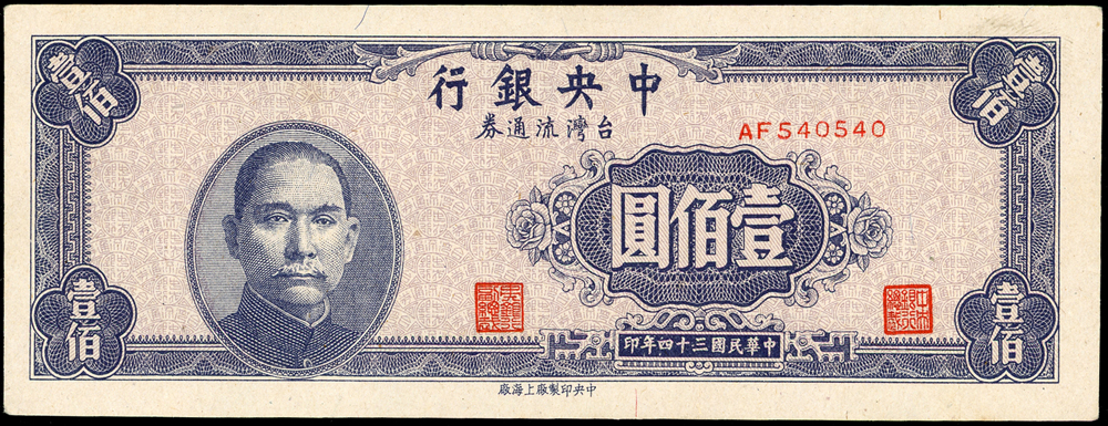紙鈔分類 中國紙鈔清代~紙幣/股票/債券(8310-8323)『楊展孝』收藏~中央銀行銀元兑換券(8324-8380)民國~中央銀行紙幣(8381-8424)民國~中國銀行(8425-8448)民國~交通銀行(8449-8459)民國~中國農民銀行(8460-8462)民國~各省銀行券(8463-8491)民國~軍用鈔票(8492-8504)民國~地方券/錢莊票(8505-8510)民國~偽政權紙幣(8511-8519)民國金融票證~債券/股票(8520-8543)臺灣銀行~日治時期(8544-8552)臺灣銀行~老台幣(8553-8577)臺灣銀行~新台幣(8578-8679)臺灣銀行~限金門/限馬祖通用(8680-8694)臺灣銀行~限大陳島通用(8695-8696)臺灣/中央銀行~趣味號(8697-8706)中央銀行~三連鈔(8707-8709)臺灣各式金融票證(8710-8715)日本『山崎 修之亮』收藏~中國及外國紙幣(8716-8738)新中國紙幣解放區時期紙幣/債券(8739-8740)中國人民銀行~各版人民幣/外匯券/金融票證(8741-8759)世界各國紙幣日本紙幣(8760-8773)世界各國紙幣(A~Z)(8774-8783) 中國紙鈔 ↳清代~紙幣/股票/債券(8310-8323) ↳『楊展孝』收藏~中央銀行銀元兑換券(8324-8380) ↳民國~中央銀行紙幣(8381-8424) ↳民國~中國銀行(8425-8448) ↳民國~交通銀行(8449-8459) ↳民國~中國農民銀行(8460-8462) ↳民國~各省銀行券(8463-8491) ↳民國~軍用鈔票(8492-8504) ↳民國~地方券/錢莊票(8505-8510) ↳民國~偽政權紙幣(8511-8519) ↳民國金融票證~債券/股票(8520-8543) ↳臺灣銀行~日治時期(8544-8552) ↳臺灣銀行~老台幣(8553-8577) ↳臺灣銀行~新台幣(8578-8679) ↳臺灣銀行~限金門/限馬祖通用(8680-8694) ↳臺灣銀行~限大陳島通用(8695-8696) ↳臺灣/中央銀行~趣味號(8697-8706) ↳中央銀行~三連鈔(8707-8709) ↳臺灣各式金融票證(8710-8715) ↳日本『山崎 修之亮』收藏~中國及外國紙幣(8716-8738)新中國紙幣 ↳解放區時期紙幣/債券(8739-8740) ↳中國人民銀行~各版人民幣/外匯券/金融票證(8741-8759)世界各國紙幣 ↳日本紙幣(8760-8773) ↳世界各國紙幣(A~Z)(8774-8783) 點大圖放大展示,點小圖切換 8 中央銀行台灣流通券上海廠民國34年100元,珍稀,中折,88新(Page 55) 結標時間 2025-12-16 12:19:40 拍品編號:8420 起拍價:NT$450000 當前價:NT$450000 自動出價 直接出價 出價 系統將按出價級數,依序為您比(出)價至上限金額 提醒您:直接出價後不可將金額改低,只能改高,蟠龍無法降低您的出價,最高出價者無法取消出價 (查看出價說明) 得標說明:需按得標價另加10%佣金 當前加價幅度:NT$0元 (查看加價級數表) 回上頁 線上出價記錄 線上 0 人次,書面 0 人次 競價客戶 所在地 出價時間 出價金額 出價方式 問與答 目前尚無提問 我要提問 請先登入會員