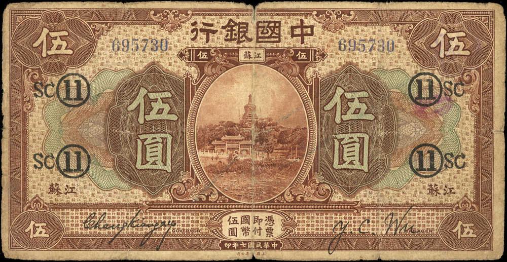 紙鈔分類 中國紙鈔清代~紙幣/股票/債券(8310-8323)『楊展孝』收藏~中央銀行銀元兑換券(8324-8380)民國~中央銀行紙幣(8381-8424)民國~中國銀行(8425-8448)民國~交通銀行(8449-8459)民國~中國農民銀行(8460-8462)民國~各省銀行券(8463-8491)民國~軍用鈔票(8492-8504)民國~地方券/錢莊票(8505-8510)民國~偽政權紙幣(8511-8519)民國金融票證~債券/股票(8520-8543)臺灣銀行~日治時期(8544-8552)臺灣銀行~老台幣(8553-8577)臺灣銀行~新台幣(8578-8679)臺灣銀行~限金門/限馬祖通用(8680-8694)臺灣銀行~限大陳島通用(8695-8696)臺灣/中央銀行~趣味號(8697-8706)中央銀行~三連鈔(8707-8709)臺灣各式金融票證(8710-8715)日本『山崎 修之亮』收藏~中國及外國紙幣(8716-8738)新中國紙幣解放區時期紙幣/債券(8739-8740)中國人民銀行~各版人民幣/外匯券/金融票證(8741-8759)世界各國紙幣日本紙幣(8760-8773)世界各國紙幣(A~Z)(8774-8783) 中國紙鈔 ↳清代~紙幣/股票/債券(8310-8323) ↳『楊展孝』收藏~中央銀行銀元兑換券(8324-8380) ↳民國~中央銀行紙幣(8381-8424) ↳民國~中國銀行(8425-8448) ↳民國~交通銀行(8449-8459) ↳民國~中國農民銀行(8460-8462) ↳民國~各省銀行券(8463-8491) ↳民國~軍用鈔票(8492-8504) ↳民國~地方券/錢莊票(8505-8510) ↳民國~偽政權紙幣(8511-8519) ↳民國金融票證~債券/股票(8520-8543) ↳臺灣銀行~日治時期(8544-8552) ↳臺灣銀行~老台幣(8553-8577) ↳臺灣銀行~新台幣(8578-8679) ↳臺灣銀行~限金門/限馬祖通用(8680-8694) ↳臺灣銀行~限大陳島通用(8695-8696) ↳臺灣/中央銀行~趣味號(8697-8706) ↳中央銀行~三連鈔(8707-8709) ↳臺灣各式金融票證(8710-8715) ↳日本『山崎 修之亮』收藏~中國及外國紙幣(8716-8738)新中國紙幣 ↳解放區時期紙幣/債券(8739-8740) ↳中國人民銀行~各版人民幣/外匯券/金融票證(8741-8759)世界各國紙幣 ↳日本紙幣(8760-8773) ↳世界各國紙幣(A~Z)(8774-8783) 點大圖放大展示,點小圖切換 中國銀行美鈔版民國7年5元江蘇,加蓋『SC』『11』,張嘉璈.許體萃簽署,張嘉璈.吳榮豐簽署各1枚,共2枚,數摺痕,其中1枚邊白修補,50-60新(Page 56) 結標時間 2025-12-16 12:24:00 拍品編號:8433 起拍價:NT$100 當前價:NT$100 自動出價 直接出價 出價 系統將按出價級數,依序為您比(出)價至上限金額 提醒您:直接出價後不可將金額改低,只能改高,蟠龍無法降低您的出價,最高出價者無法取消出價 (查看出價說明) 得標說明:需按得標價另加10%佣金 當前加價幅度:NT$0元 (查看加價級數表) 回上頁 線上出價記錄 線上 0 人次,書面 0 人次 競價客戶 所在地 出價時間 出價金額 出價方式 問與答 目前尚無提問 我要提問 請先登入會員