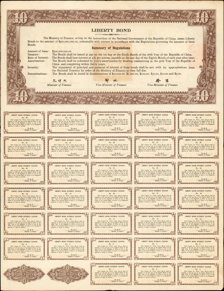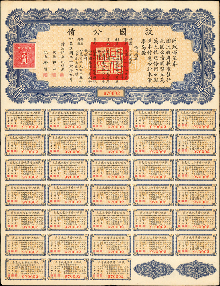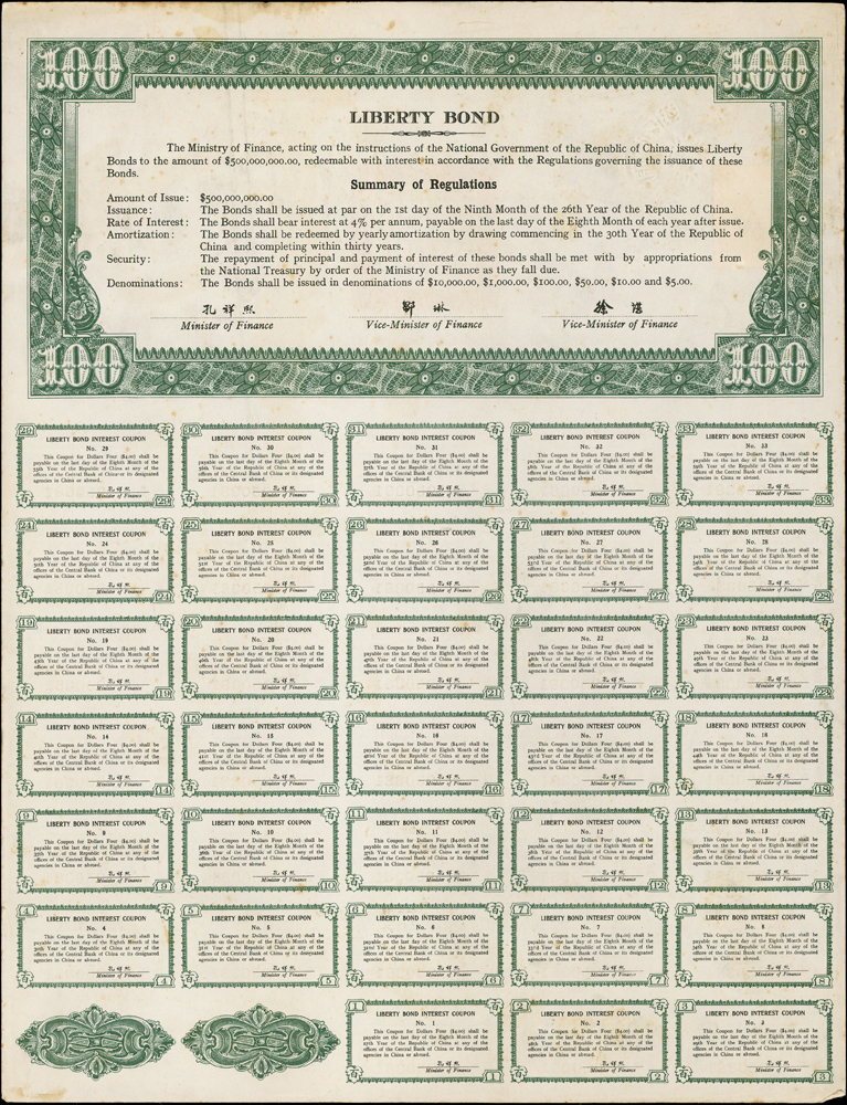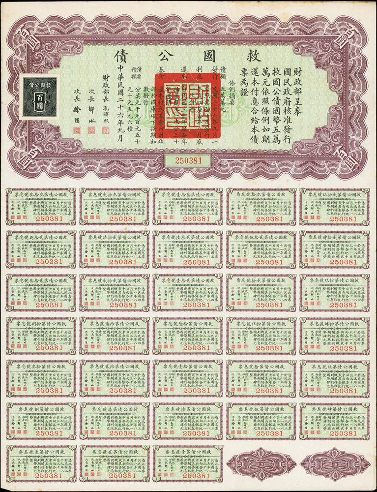 紙鈔分類 中國紙鈔清代~紙幣/股票/債券(8310-8323)『楊展孝』收藏~中央銀行銀元兑換券(8324-8380)民國~中央銀行紙幣(8381-8424)民國~中國銀行(8425-8448)民國~交通銀行(8449-8459)民國~中國農民銀行(8460-8462)民國~各省銀行券(8463-8491)民國~軍用鈔票(8492-8504)民國~地方券/錢莊票(8505-8510)民國~偽政權紙幣(8511-8519)民國金融票證~債券/股票(8520-8543)臺灣銀行~日治時期(8544-8552)臺灣銀行~老台幣(8553-8577)臺灣銀行~新台幣(8578-8679)臺灣銀行~限金門/限馬祖通用(8680-8694)臺灣銀行~限大陳島通用(8695-8696)臺灣/中央銀行~趣味號(8697-8706)中央銀行~三連鈔(8707-8709)臺灣各式金融票證(8710-8715)日本『山崎 修之亮』收藏~中國及外國紙幣(8716-8738)新中國紙幣解放區時期紙幣/債券(8739-8740)中國人民銀行~各版人民幣/外匯券/金融票證(8741-8759)世界各國紙幣日本紙幣(8760-8773)世界各國紙幣(A~Z)(8774-8783) 中國紙鈔 ↳清代~紙幣/股票/債券(8310-8323) ↳『楊展孝』收藏~中央銀行銀元兑換券(8324-8380) ↳民國~中央銀行紙幣(8381-8424) ↳民國~中國銀行(8425-8448) ↳民國~交通銀行(8449-8459) ↳民國~中國農民銀行(8460-8462) ↳民國~各省銀行券(8463-8491) ↳民國~軍用鈔票(8492-8504) ↳民國~地方券/錢莊票(8505-8510) ↳民國~偽政權紙幣(8511-8519) ↳民國金融票證~債券/股票(8520-8543) ↳臺灣銀行~日治時期(8544-8552) ↳臺灣銀行~老台幣(8553-8577) ↳臺灣銀行~新台幣(8578-8679) ↳臺灣銀行~限金門/限馬祖通用(8680-8694) ↳臺灣銀行~限大陳島通用(8695-8696) ↳臺灣/中央銀行~趣味號(8697-8706) ↳中央銀行~三連鈔(8707-8709) ↳臺灣各式金融票證(8710-8715) ↳日本『山崎 修之亮』收藏~中國及外國紙幣(8716-8738)新中國紙幣 ↳解放區時期紙幣/債券(8739-8740) ↳中國人民銀行~各版人民幣/外匯券/金融票證(8741-8759)世界各國紙幣 ↳日本紙幣(8760-8773) ↳世界各國紙幣(A~Z)(8774-8783) 點大圖放大展示,點小圖切換 民國26年《救國公債》(34.9*26.8cm)拾圓.百圓各1張,財長:孔祥熙,息票完整,90新(Page 65) 結標時間 2025-12-16 12:59:00 拍品編號:8538 起拍價:NT$100 當前價:NT$100 自動出價 直接出價 出價 系統將按出價級數,依序為您比(出)價至上限金額 提醒您:直接出價後不可將金額改低,只能改高,蟠龍無法降低您的出價,最高出價者無法取消出價 (查看出價說明) 得標說明:需按得標價另加10%佣金 當前加價幅度:NT$0元 (查看加價級數表) 回上頁 線上出價記錄 線上 0 人次,書面 0 人次 競價客戶 所在地 出價時間 出價金額 出價方式 問與答 目前尚無提問 我要提問 請先登入會員