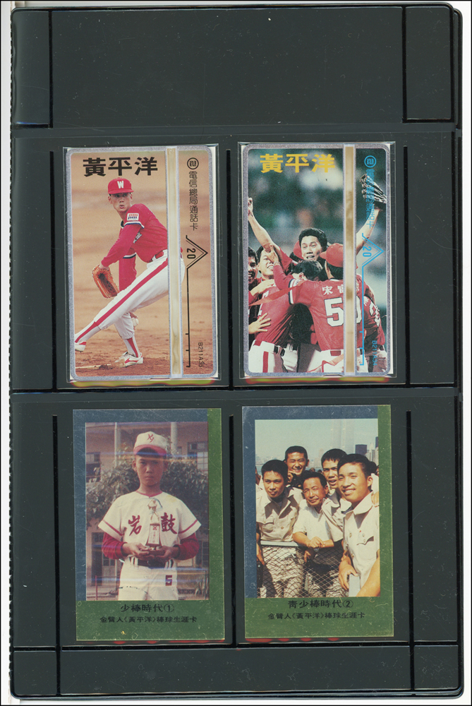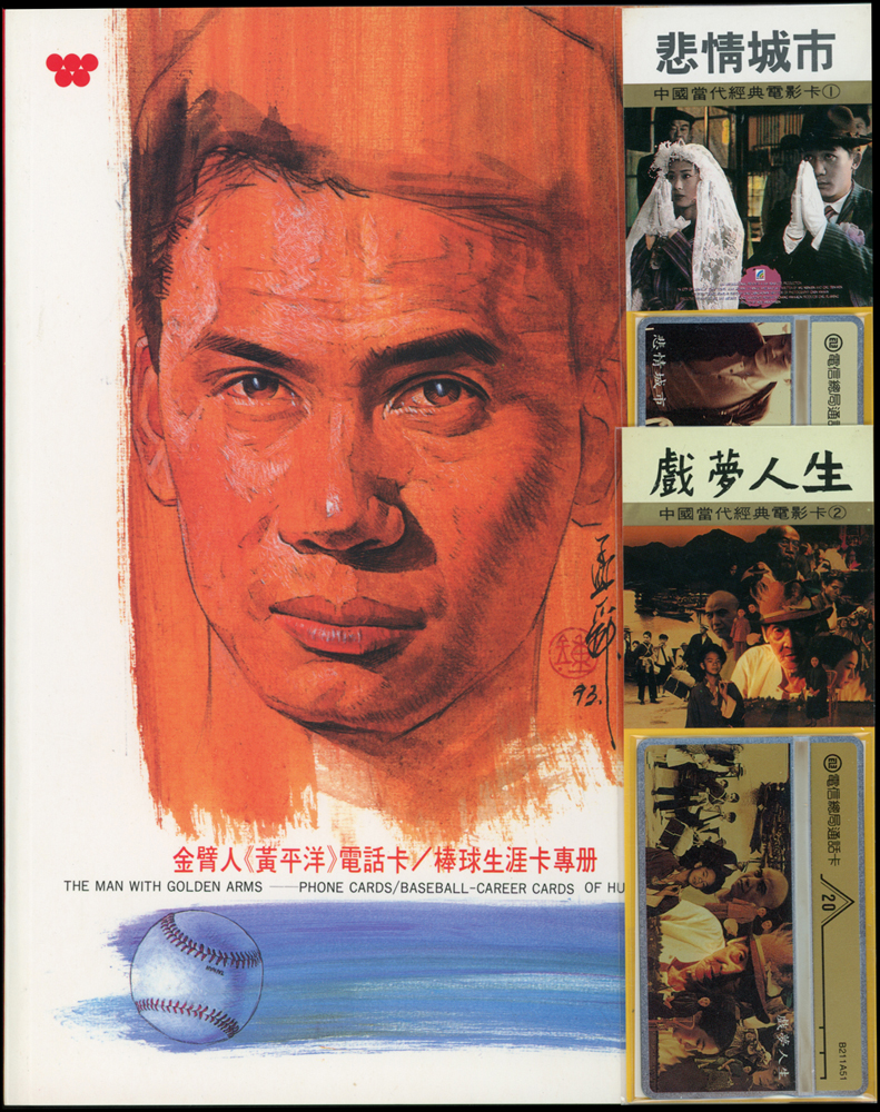 台灣電話卡,均未使用,包括:(1)1993年《金臂人黃平洋》電話卡專冊1本,每本內含光學電話卡2張,棒球生涯卡10張;(2)《悲情城市》20次訂製卡;(3)《戲夢人生》20次訂製卡(Page 84)
