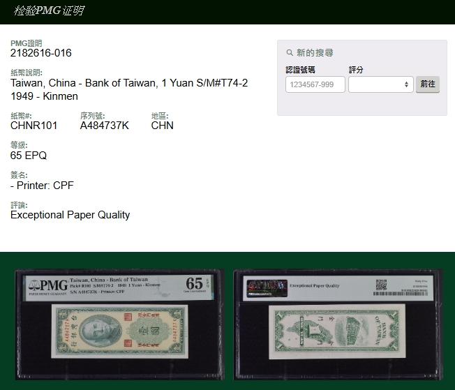 紙鈔分類 中國紙鈔清代~紙幣/股票/債券(8310-8323)『楊展孝』收藏~中央銀行銀元兑換券(8324-8380)民國~中央銀行紙幣(8381-8424)民國~中國銀行(8425-8448)民國~交通銀行(8449-8459)民國~中國農民銀行(8460-8462)民國~各省銀行券(8463-8491)民國~軍用鈔票(8492-8504)民國~地方券/錢莊票(8505-8510)民國~偽政權紙幣(8511-8519)民國金融票證~債券/股票(8520-8543)臺灣銀行~日治時期(8544-8552)臺灣銀行~老台幣(8553-8577)臺灣銀行~新台幣(8578-8679)臺灣銀行~限金門/限馬祖通用(8680-8694)臺灣銀行~限大陳島通用(8695-8696)臺灣/中央銀行~趣味號(8697-8706)中央銀行~三連鈔(8707-8709)臺灣各式金融票證(8710-8715)日本『山崎 修之亮』收藏~中國及外國紙幣(8716-8738)新中國紙幣解放區時期紙幣/債券(8739-8740)中國人民銀行~各版人民幣/外匯券/金融票證(8741-8759)世界各國紙幣日本紙幣(8760-8773)世界各國紙幣(A~Z)(8774-8783) 中國紙鈔 ↳清代~紙幣/股票/債券(8310-8323) ↳『楊展孝』收藏~中央銀行銀元兑換券(8324-8380) ↳民國~中央銀行紙幣(8381-8424) ↳民國~中國銀行(8425-8448) ↳民國~交通銀行(8449-8459) ↳民國~中國農民銀行(8460-8462) ↳民國~各省銀行券(8463-8491) ↳民國~軍用鈔票(8492-8504) ↳民國~地方券/錢莊票(8505-8510) ↳民國~偽政權紙幣(8511-8519) ↳民國金融票證~債券/股票(8520-8543) ↳臺灣銀行~日治時期(8544-8552) ↳臺灣銀行~老台幣(8553-8577) ↳臺灣銀行~新台幣(8578-8679) ↳臺灣銀行~限金門/限馬祖通用(8680-8694) ↳臺灣銀行~限大陳島通用(8695-8696) ↳臺灣/中央銀行~趣味號(8697-8706) ↳中央銀行~三連鈔(8707-8709) ↳臺灣各式金融票證(8710-8715) ↳日本『山崎 修之亮』收藏~中國及外國紙幣(8716-8738)新中國紙幣 ↳解放區時期紙幣/債券(8739-8740) ↳中國人民銀行~各版人民幣/外匯券/金融票證(8741-8759)世界各國紙幣 ↳日本紙幣(8760-8773) ↳世界各國紙幣(A~Z)(8774-8783) 點大圖放大展示,點小圖切換 3 臺灣銀行金門民國38年1元中央廠連號二枚,AK字軌布圖水印帶平3,均評級:PMG Gem Uncirculated 65 EPQ(Page 77) 結標時間 2025-12-16 13:47:40 拍品編號:8684 起拍價:NT$2200 當前價:NT$2200 自動出價 直接出價 出價 系統將按出價級數,依序為您比(出)價至上限金額 提醒您:直接出價後不可將金額改低,只能改高,蟠龍無法降低您的出價,最高出價者無法取消出價 (查看出價說明) 得標說明:需按得標價另加10%佣金 當前加價幅度:NT$100元 (查看加價級數表) 回上頁 線上出價記錄 線上 1 人次,書面 0 人次 競價客戶 所在地 出價時間 出價金額 出價方式 w********4 (領先) 台灣 2025-11-25 15:47:08 NT$2200 自動出價 問與答 目前尚無提問 我要提問 請先登入會員