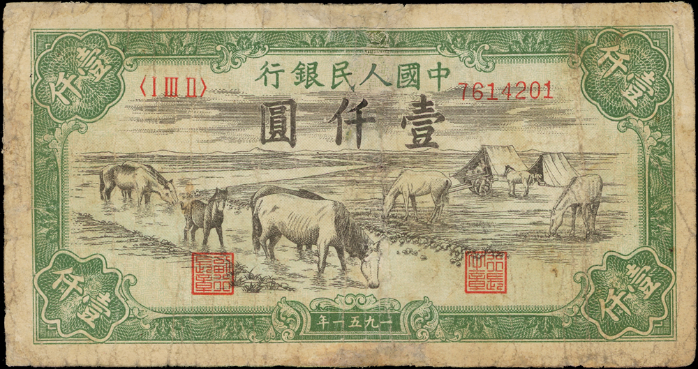 紙鈔分類 中國紙鈔清代~紙幣/股票/債券(8310-8323)『楊展孝』收藏~中央銀行銀元兑換券(8324-8380)民國~中央銀行紙幣(8381-8424)民國~中國銀行(8425-8448)民國~交通銀行(8449-8459)民國~中國農民銀行(8460-8462)民國~各省銀行券(8463-8491)民國~軍用鈔票(8492-8504)民國~地方券/錢莊票(8505-8510)民國~偽政權紙幣(8511-8519)民國金融票證~債券/股票(8520-8543)臺灣銀行~日治時期(8544-8552)臺灣銀行~老台幣(8553-8577)臺灣銀行~新台幣(8578-8679)臺灣銀行~限金門/限馬祖通用(8680-8694)臺灣銀行~限大陳島通用(8695-8696)臺灣/中央銀行~趣味號(8697-8706)中央銀行~三連鈔(8707-8709)臺灣各式金融票證(8710-8715)日本『山崎 修之亮』收藏~中國及外國紙幣(8716-8738)新中國紙幣解放區時期紙幣/債券(8739-8740)中國人民銀行~各版人民幣/外匯券/金融票證(8741-8759)世界各國紙幣日本紙幣(8760-8773)世界各國紙幣(A~Z)(8774-8783) 中國紙鈔 ↳清代~紙幣/股票/債券(8310-8323) ↳『楊展孝』收藏~中央銀行銀元兑換券(8324-8380) ↳民國~中央銀行紙幣(8381-8424) ↳民國~中國銀行(8425-8448) ↳民國~交通銀行(8449-8459) ↳民國~中國農民銀行(8460-8462) ↳民國~各省銀行券(8463-8491) ↳民國~軍用鈔票(8492-8504) ↳民國~地方券/錢莊票(8505-8510) ↳民國~偽政權紙幣(8511-8519) ↳民國金融票證~債券/股票(8520-8543) ↳臺灣銀行~日治時期(8544-8552) ↳臺灣銀行~老台幣(8553-8577) ↳臺灣銀行~新台幣(8578-8679) ↳臺灣銀行~限金門/限馬祖通用(8680-8694) ↳臺灣銀行~限大陳島通用(8695-8696) ↳臺灣/中央銀行~趣味號(8697-8706) ↳中央銀行~三連鈔(8707-8709) ↳臺灣各式金融票證(8710-8715) ↳日本『山崎 修之亮』收藏~中國及外國紙幣(8716-8738)新中國紙幣 ↳解放區時期紙幣/債券(8739-8740) ↳中國人民銀行~各版人民幣/外匯券/金融票證(8741-8759)世界各國紙幣 ↳日本紙幣(8760-8773) ↳世界各國紙幣(A~Z)(8774-8783) 點大圖放大展示,點小圖切換 中國人民銀行一版人民幣1951年1000元馬飲水圖(13.4*7cm),數折,對摺處及紙緣損修補,65新(Page 88) 結標時間 2025-12-16 14:07:20 拍品編號:8743 起拍價:NT$18000 當前價:NT$18000 自動出價 直接出價 出價 系統將按出價級數,依序為您比(出)價至上限金額 提醒您:直接出價後不可將金額改低,只能改高,蟠龍無法降低您的出價,最高出價者無法取消出價 (查看出價說明) 得標說明:需按得標價另加10%佣金 當前加價幅度:NT$500元 (查看加價級數表) 回上頁 線上出價記錄 線上 1 人次,書面 0 人次 競價客戶 所在地 出價時間 出價金額 出價方式 d********8 (領先) 台灣 2025-11-25 11:29:18 NT$18000 自動出價 問與答 目前尚無提問 我要提問 請先登入會員