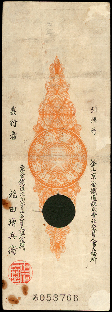 紙鈔分類 中國紙鈔清代~紙幣/股票/債券(8310-8323)『楊展孝』收藏~中央銀行銀元兑換券(8324-8380)民國~中央銀行紙幣(8381-8424)民國~中國銀行(8425-8448)民國~交通銀行(8449-8459)民國~中國農民銀行(8460-8462)民國~各省銀行券(8463-8491)民國~軍用鈔票(8492-8504)民國~地方券/錢莊票(8505-8510)民國~偽政權紙幣(8511-8519)民國金融票證~債券/股票(8520-8543)臺灣銀行~日治時期(8544-8552)臺灣銀行~老台幣(8553-8577)臺灣銀行~新台幣(8578-8679)臺灣銀行~限金門/限馬祖通用(8680-8694)臺灣銀行~限大陳島通用(8695-8696)臺灣/中央銀行~趣味號(8697-8706)中央銀行~三連鈔(8707-8709)臺灣各式金融票證(8710-8715)日本『山崎 修之亮』收藏~中國及外國紙幣(8716-8738)新中國紙幣解放區時期紙幣/債券(8739-8740)中國人民銀行~各版人民幣/外匯券/金融票證(8741-8759)世界各國紙幣日本紙幣(8760-8773)世界各國紙幣(A~Z)(8774-8783) 中國紙鈔 ↳清代~紙幣/股票/債券(8310-8323) ↳『楊展孝』收藏~中央銀行銀元兑換券(8324-8380) ↳民國~中央銀行紙幣(8381-8424) ↳民國~中國銀行(8425-8448) ↳民國~交通銀行(8449-8459) ↳民國~中國農民銀行(8460-8462) ↳民國~各省銀行券(8463-8491) ↳民國~軍用鈔票(8492-8504) ↳民國~地方券/錢莊票(8505-8510) ↳民國~偽政權紙幣(8511-8519) ↳民國金融票證~債券/股票(8520-8543) ↳臺灣銀行~日治時期(8544-8552) ↳臺灣銀行~老台幣(8553-8577) ↳臺灣銀行~新台幣(8578-8679) ↳臺灣銀行~限金門/限馬祖通用(8680-8694) ↳臺灣銀行~限大陳島通用(8695-8696) ↳臺灣/中央銀行~趣味號(8697-8706) ↳中央銀行~三連鈔(8707-8709) ↳臺灣各式金融票證(8710-8715) ↳日本『山崎 修之亮』收藏~中國及外國紙幣(8716-8738)新中國紙幣 ↳解放區時期紙幣/債券(8739-8740) ↳中國人民銀行~各版人民幣/外匯券/金融票證(8741-8759)世界各國紙幣 ↳日本紙幣(8760-8773) ↳世界各國紙幣(A~Z)(8774-8783) 點大圖放大展示,點小圖切換 (1900年)光緒26年朝鲜釜山京釜鐵道株式會社-百文,數折,右下角黃斑,80新(Page 91) 結標時間 2025-12-16 14:18:00 拍品編號:8775 起拍價:NT$1500 當前價:NT$1500 自動出價 直接出價 出價 系統將按出價級數,依序為您比(出)價至上限金額 提醒您:直接出價後不可將金額改低,只能改高,蟠龍無法降低您的出價,最高出價者無法取消出價 (查看出價說明) 得標說明:需按得標價另加10%佣金 當前加價幅度:NT$0元 (查看加價級數表) 回上頁 線上出價記錄 線上 0 人次,書面 0 人次 競價客戶 所在地 出價時間 出價金額 出價方式 問與答 目前尚無提問 我要提問 請先登入會員