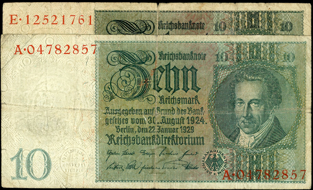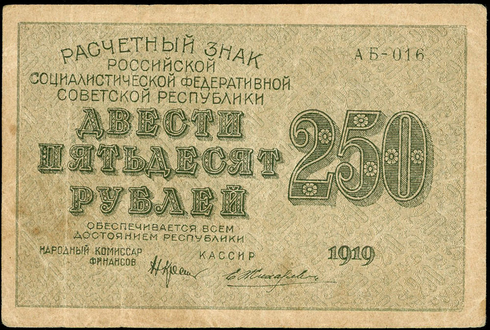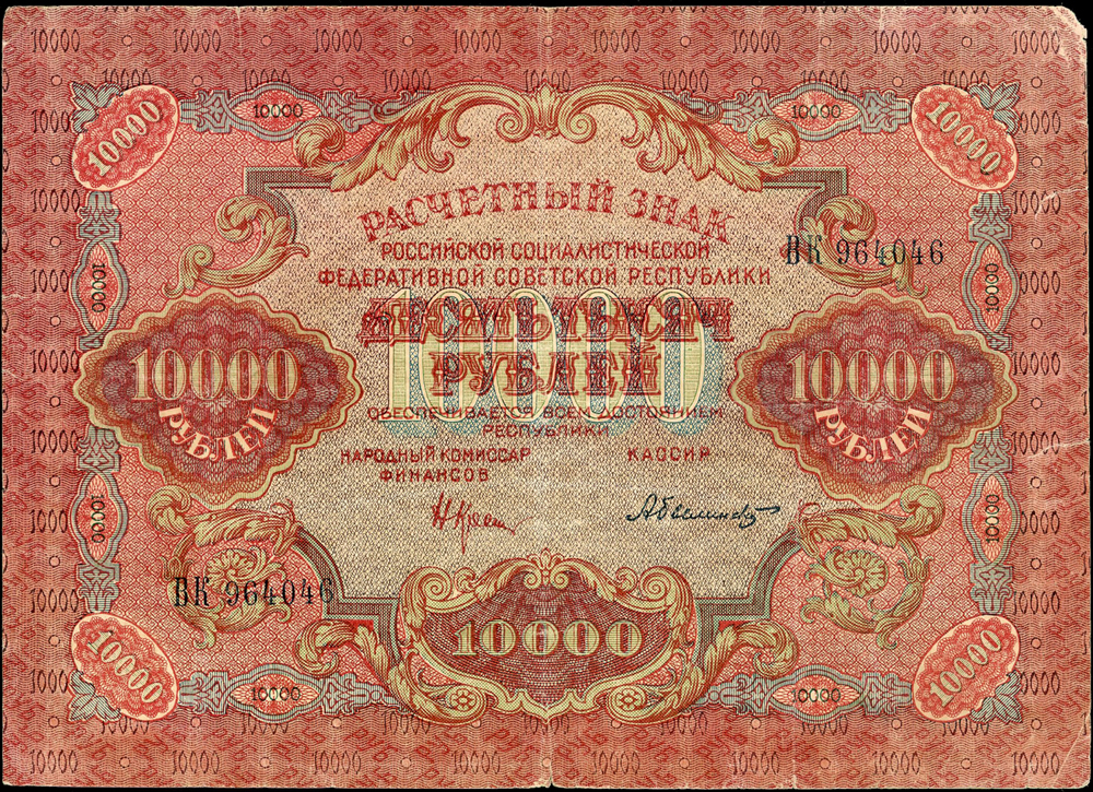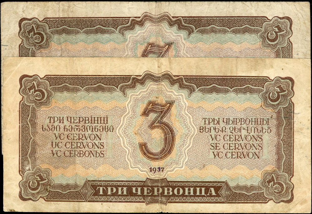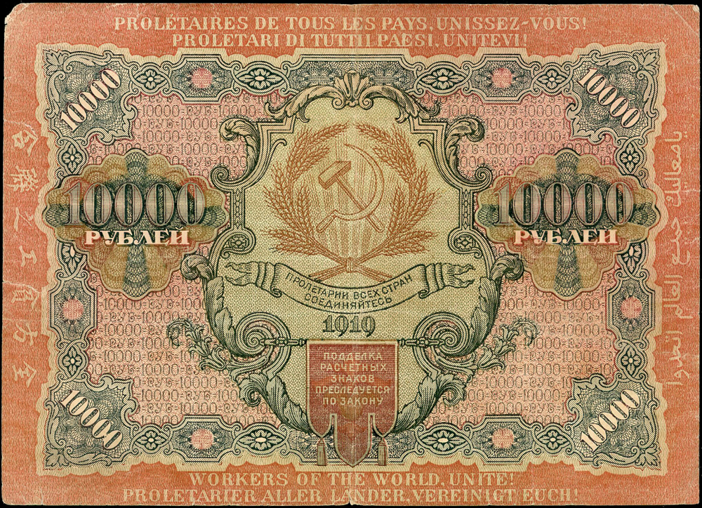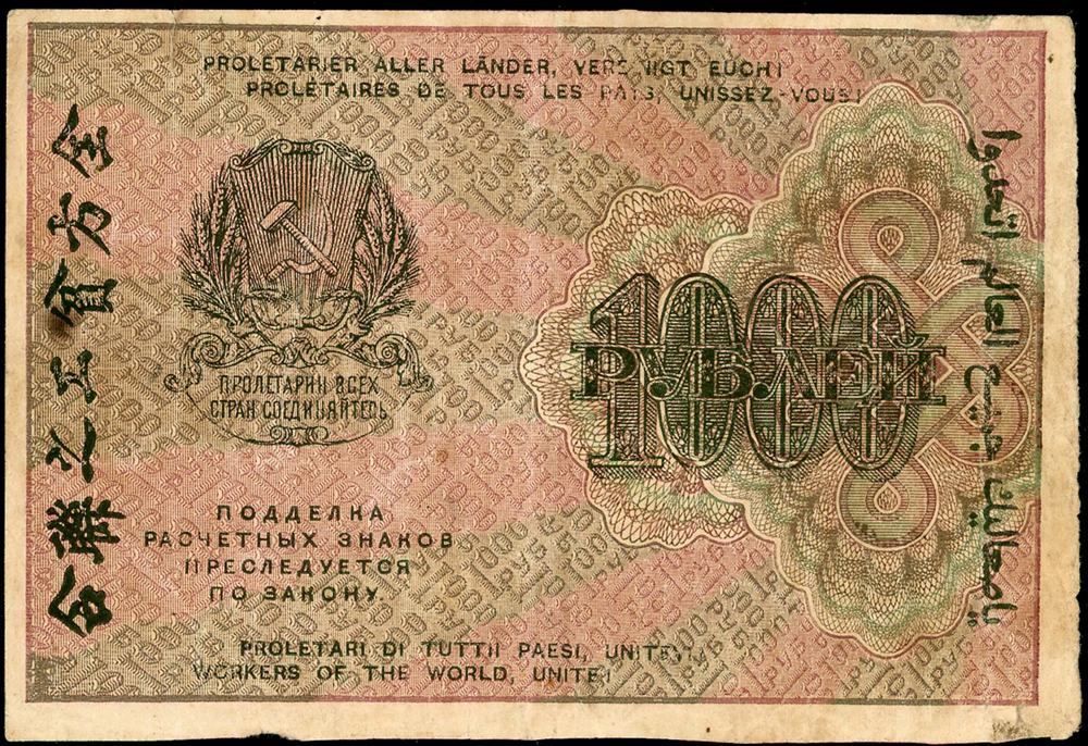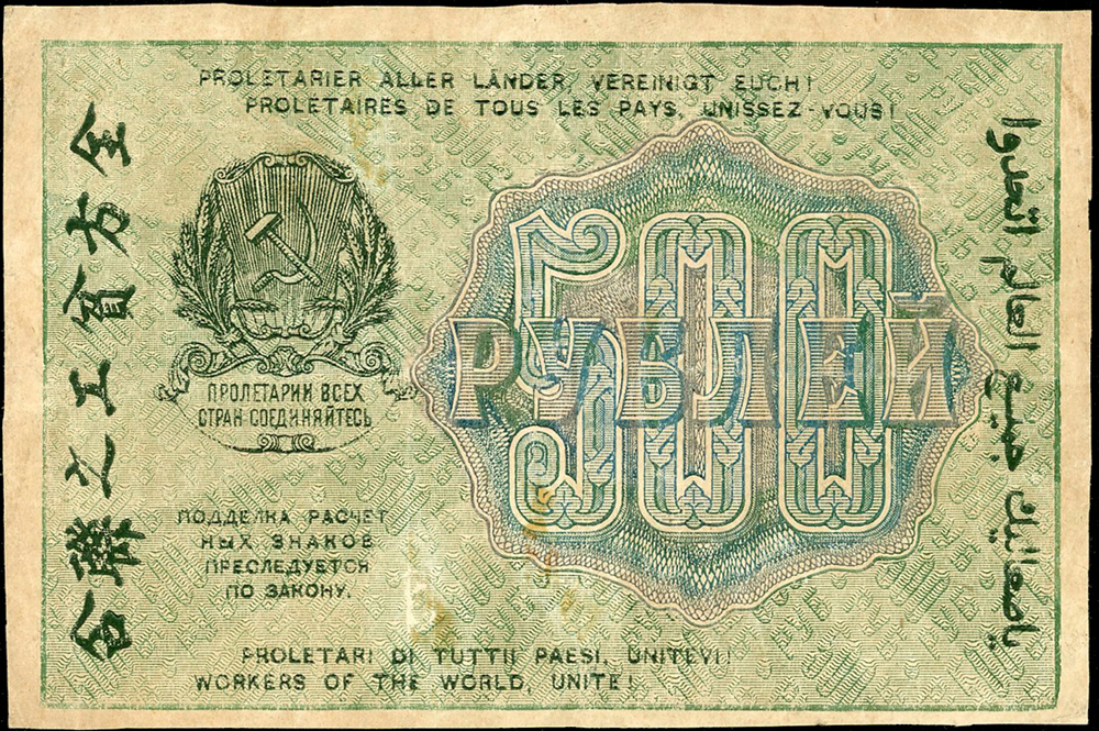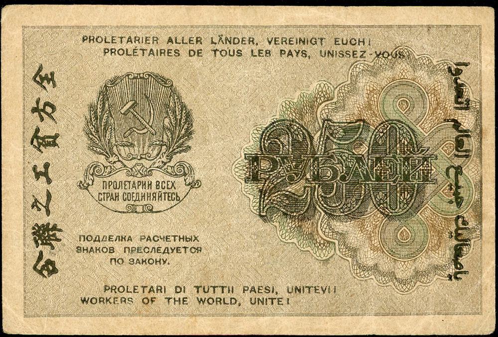 外鈔:(1)蘇聯1917~1937年$3~1萬盧布鈔票15枚(11種),含:1919年七國結算票-1000.500.250盧布各1枚,票上均印有中文「全方貧工之聯合」(即全世界無產階級聯合起來),75-90新;(2)德國1924年舊馬克10元2枚,數折微裂,65-70新