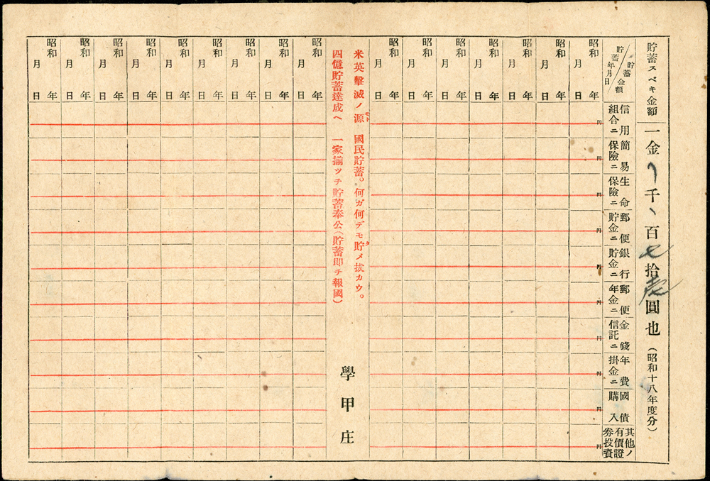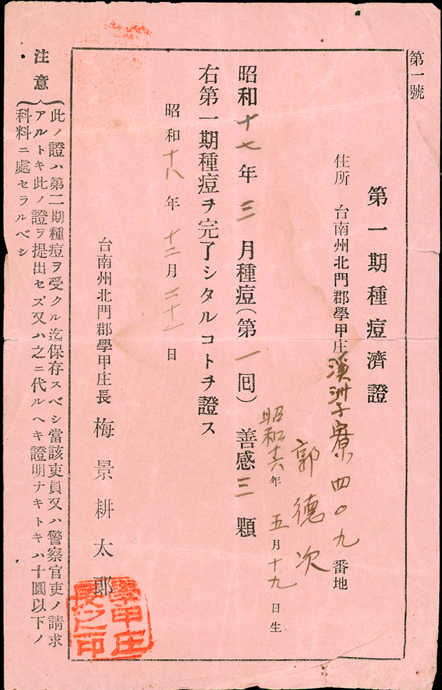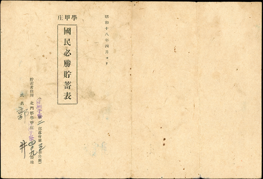 雜項與文獻分類 大清郵政 1911年以前清代~文獻(1113-1124)清代~臺灣文獻(1125-1135)印花稅票及集郵文獻印花稅票及單據(6366-6380)集郵文獻~華郵出版品(6381-6576)雜項收藏及幣鈔文獻幣鈔文獻~台灣及大陸出版品(8784-8794)雜項收藏~電話卡/紙質文獻(8795-8807)雜項收藏~國共內戰(8808-8816)雜項收藏~古籍善本(8817-8824) 大清郵政 1911年以前 ↳清代~文獻(1113-1124) ↳清代~臺灣文獻(1125-1135)印花稅票及集郵文獻 ↳印花稅票及單據(6366-6380) ↳集郵文獻~華郵出版品(6381-6576)雜項收藏及幣鈔文獻 ↳幣鈔文獻~台灣及大陸出版品(8784-8794) ↳雜項收藏~電話卡/紙質文獻(8795-8807) ↳雜項收藏~國共內戰(8808-8816) ↳雜項收藏~古籍善本(8817-8824) 點大圖放大展示,點小圖切換 (1943年)昭和18年台南州北門郡學甲庄單據二件:(1)第一期種痘濟證(9.5*15cm);(2)國民必勝貯蓄表(24.3*16.5cm),摺痕,80新 結標時間 2025-12-16 14:26:00 拍品編號:8799 起拍價:NT$100 當前價:NT$100 自動出價 直接出價 出價 系統將按出價級數,依序為您比(出)價至上限金額 提醒您:直接出價後不可將金額改低,只能改高,蟠龍無法降低您的出價,最高出價者無法取消出價 (查看出價說明) 得標說明:需按得標價另加10%佣金 當前加價幅度:NT$0元 (查看加價級數表) 回上頁 線上出價記錄 線上 0 人次,書面 0 人次 競價客戶 所在地 出價時間 出價金額 出價方式 問與答 目前尚無提問 我要提問 請先登入會員