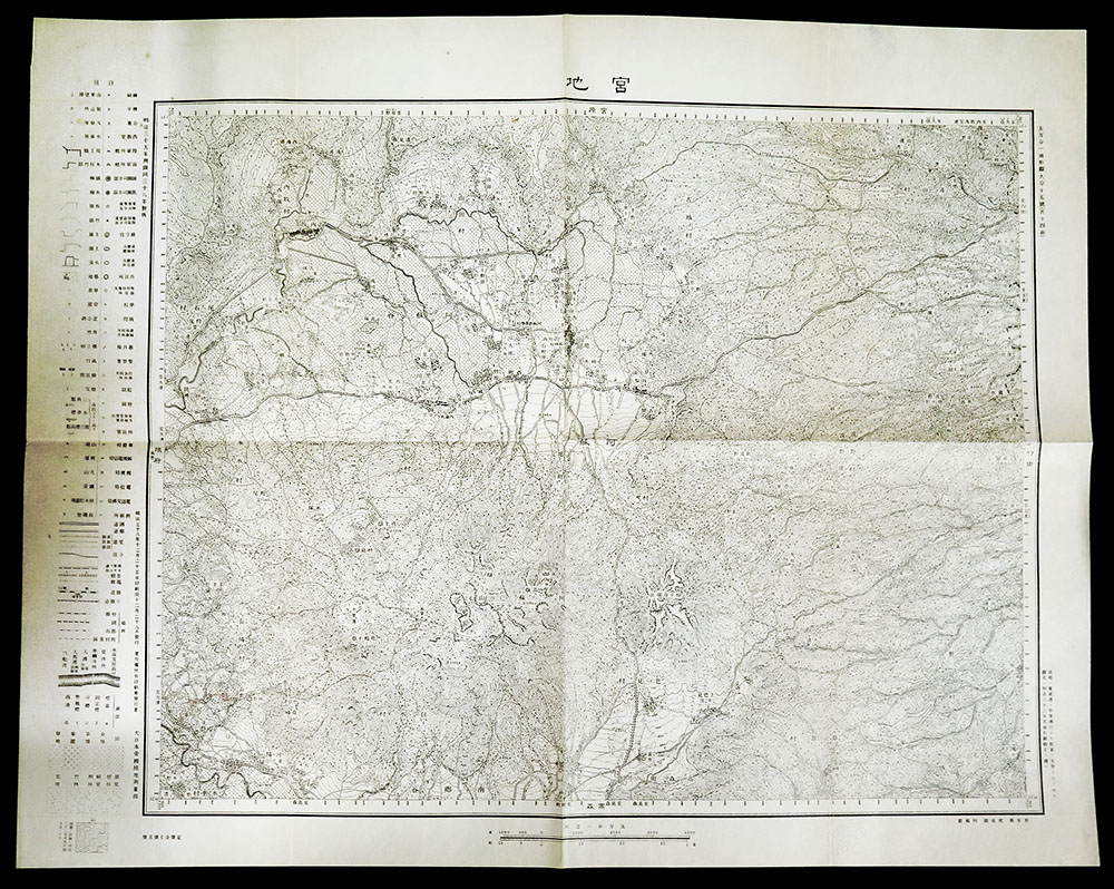 明治25年~昭和19年(1892-1944年)日本-九州各地地形圖計155張不同(58*46cm),整理整齊於《戰前版.五万分一日本總圖集》自製冊中,共4冊,陸地測量部/內務省地理調查所發行,黑白印刷,內含「秘」.「軍事極秘」等,保存佳,總重約5410g;歡迎親臨檢視或網上瀏覽