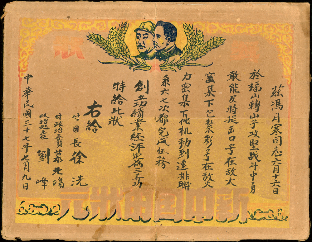 雜項與文獻分類 大清郵政 1911年以前清代~文獻(1113-1124)清代~臺灣文獻(1125-1135)印花稅票及集郵文獻印花稅票及單據(6366-6380)集郵文獻~華郵出版品(6381-6576)雜項收藏及幣鈔文獻幣鈔文獻~台灣及大陸出版品(8784-8794)雜項收藏~電話卡/紙質文獻(8795-8807)雜項收藏~國共內戰(8808-8816)雜項收藏~古籍善本(8817-8824) 大清郵政 1911年以前 ↳清代~文獻(1113-1124) ↳清代~臺灣文獻(1125-1135)印花稅票及集郵文獻 ↳印花稅票及單據(6366-6380) ↳集郵文獻~華郵出版品(6381-6576)雜項收藏及幣鈔文獻 ↳幣鈔文獻~台灣及大陸出版品(8784-8794) ↳雜項收藏~電話卡/紙質文獻(8795-8807) ↳雜項收藏~國共內戰(8808-8816) ↳雜項收藏~古籍善本(8817-8824) 點圖放大展示 1948年『獎狀』(22.8*18cm)一件,上方朱德及毛澤東像,貼於硬紙板上,內容為表揚馮同志攻堅戰中勇敢表現,60新(Page 93) 結標時間 2025-12-16 14:29:40 拍品編號:8810 起拍價:NT$100 當前價:NT$100 自動出價 直接出價 出價 系統將按出價級數,依序為您比(出)價至上限金額 提醒您:直接出價後不可將金額改低,只能改高,蟠龍無法降低您的出價,最高出價者無法取消出價 (查看出價說明) 得標說明:需按得標價另加10%佣金 當前加價幅度:NT$0元 (查看加價級數表) 回上頁 線上出價記錄 線上 0 人次,書面 0 人次 競價客戶 所在地 出價時間 出價金額 出價方式 問與答 目前尚無提問 我要提問 請先登入會員