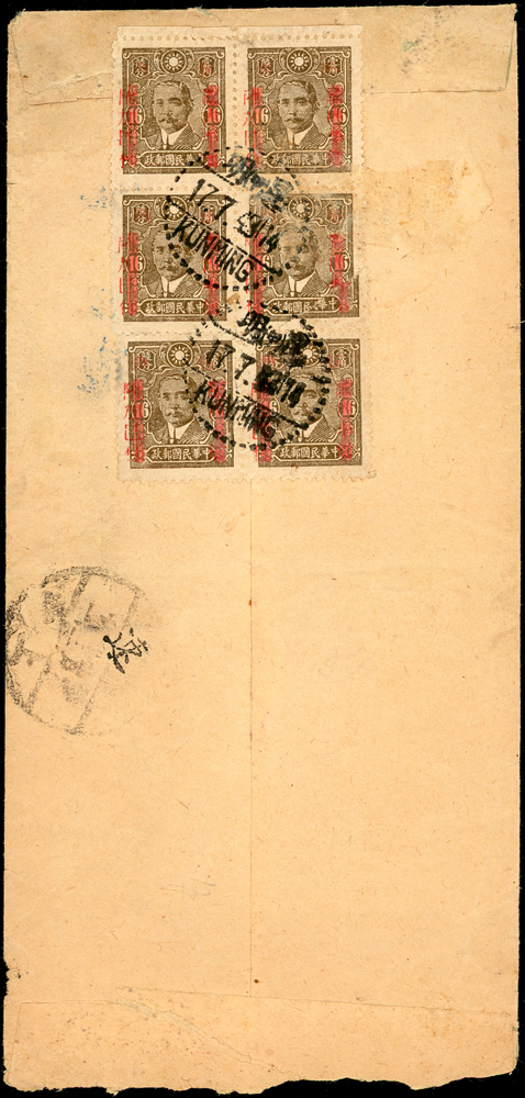 商品分類 集郵目錄、工具書類(8)郵學期刊類-台灣出版(100)郵學期刊類-海外出版(26)集郵專著類(41)錢幣紙鈔書籍(6)蟠龍拍賣目錄(22)台灣年度郵票冊(29)新中國錢/紙幣(24)線上優惠商品(2)直購品-郵票直購品-信封直購品-錢幣直購品-紙鈔直購品-雜項與文獻 集郵目錄、工具書類(8)郵學期刊類-台灣出版(100)郵學期刊類-海外出版(26)集郵專著類(41)錢幣紙鈔書籍(6)蟠龍拍賣目錄(22)台灣年度郵票冊(29)新中國錢/紙幣(24)線上優惠商品(2)直購品-郵票直購品-信封直購品-錢幣直購品-紙鈔直購品-雜項與文獻 點大圖放大展示,點小圖切換 1943年昆明寄上海掛號封,背貼雲南加蓋『劃線伍角』6方連,銷昆明17.7.43,上海到戳不清(Page 37) 拍品編號:1475 商品重量:20g 直購價:NT$18700 已包含10%佣金 加入購物車 回上頁 問與答 目前尚無提問 我要提問 請先登入會員